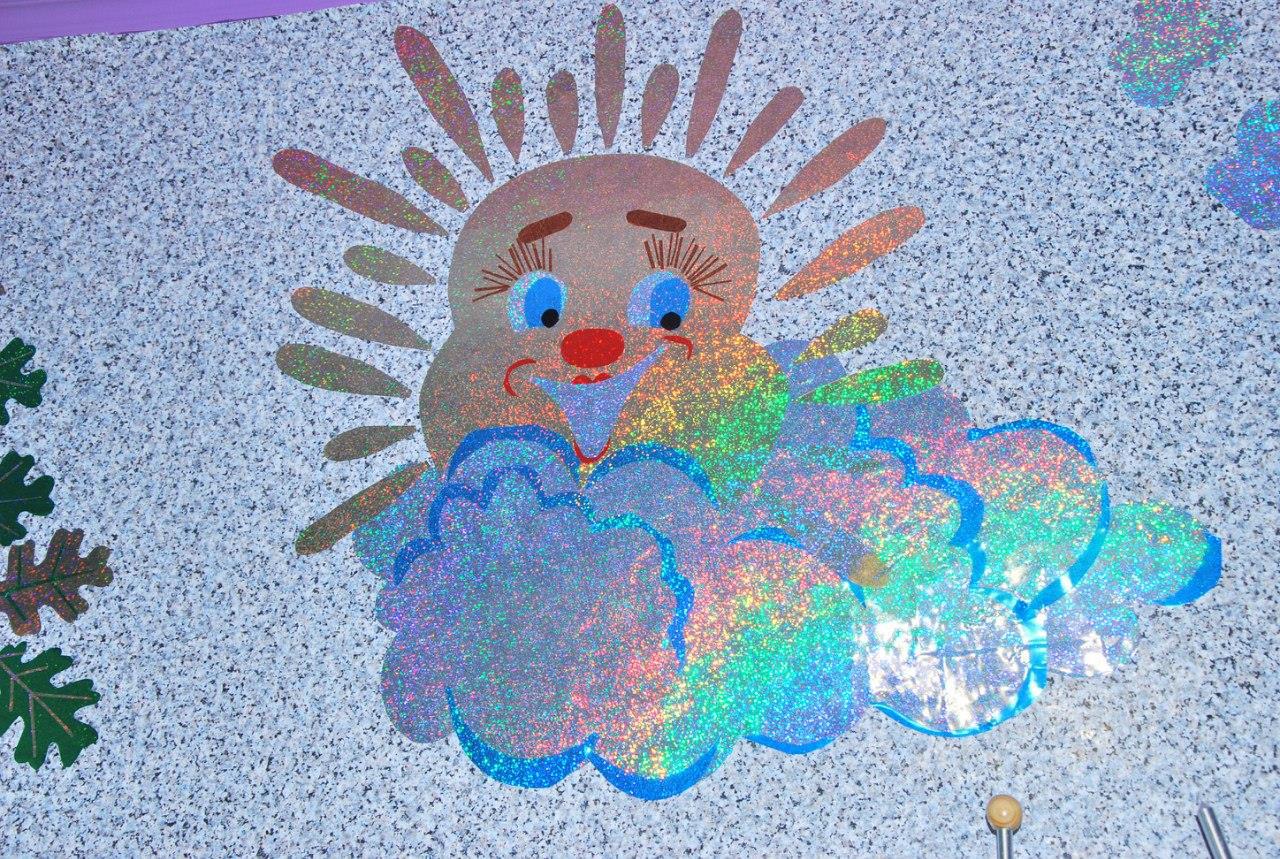 Ну, я и рванула оформлять с помощью голографических самоклеющихся обоев разного цвета.