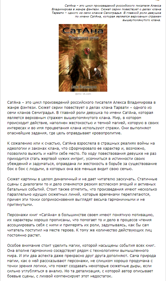 Конечно, я бы как автор, добавил кое-что от себя - но то моё субъективное мнение (как творца, бесконечно любящего своё детище). Читателю виднее. И мне очень приятно, что Писательский клуб столь основательно и качественно взялся за написание статьи.