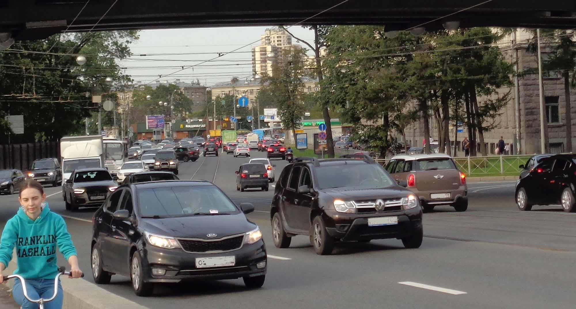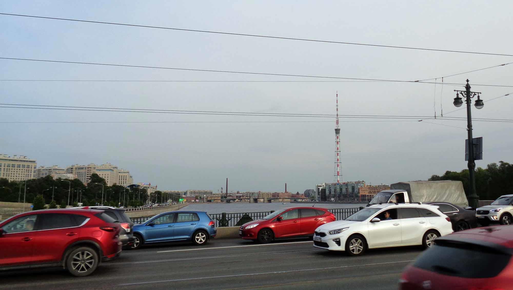 "Три красные машины": просто поток машин на Ушаковском мосту: