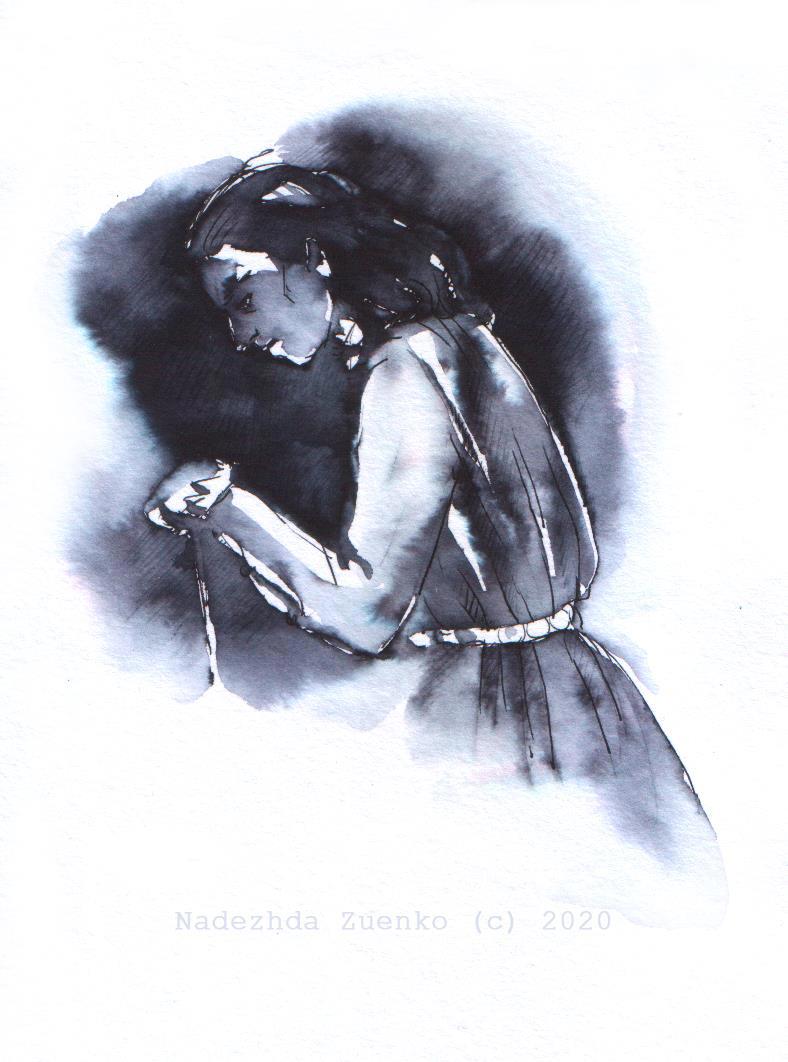 Когда-то давно, еще в школе, я активно рисовала пером и тушью. В те времена перья были простецкие, "со звездочкой" и тушь четырех цветов: черная, синяя, красная и зеленая. У меня, правда, только черная и зеленая ). Потом прикупила перо позабористей, чтобы побольше туши держало... А потом лет шесть рисовала только ручкой на чем попало. Так исторически сложилось.