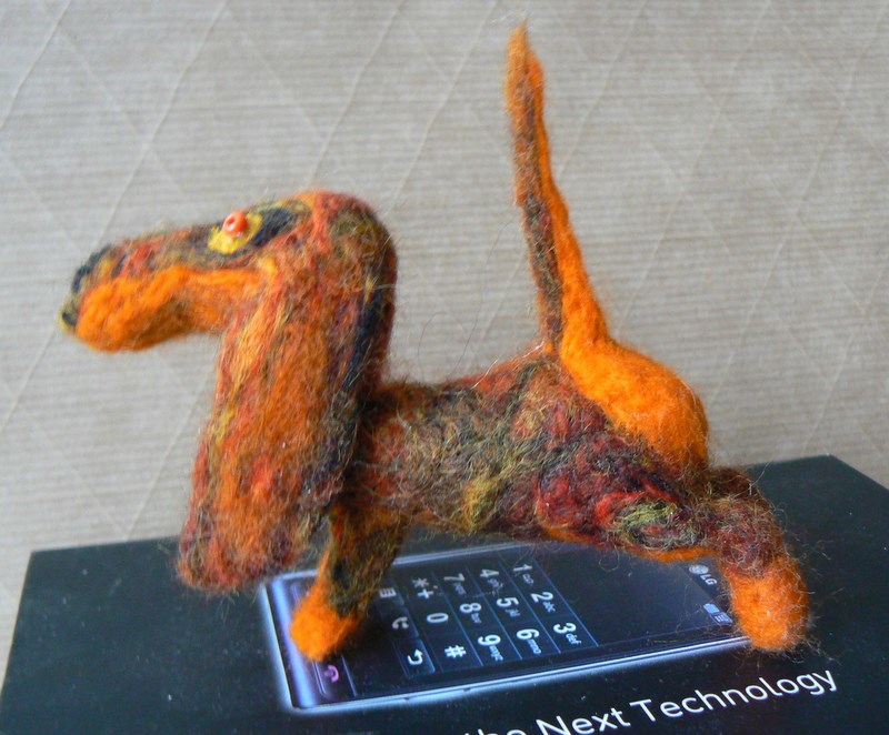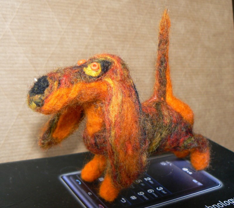 Вродь уже ничоси так, тока цвет бешеный. Я взяла красно-черно-желтый меланж, думала буит нечто типа тигровой тяксы, а вышла серо-буро-малиновая чувырла. Но мне понравилось, забавненька так: иголкой тык-тык-тык, оно сначала ничо, а потом начинает формироваться. Весело!
