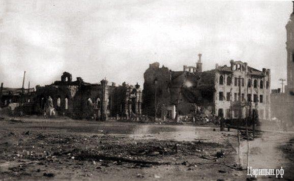 На фотографиях самых разных лет (годы тоже приблизительно можно определить без всяких объяснений, я полагаю) рядом с ним везде фигурирует трёхэтажное здание. Да, это всего лишь два дома, уцелевших на этой улице от дореволюционного Царицына: