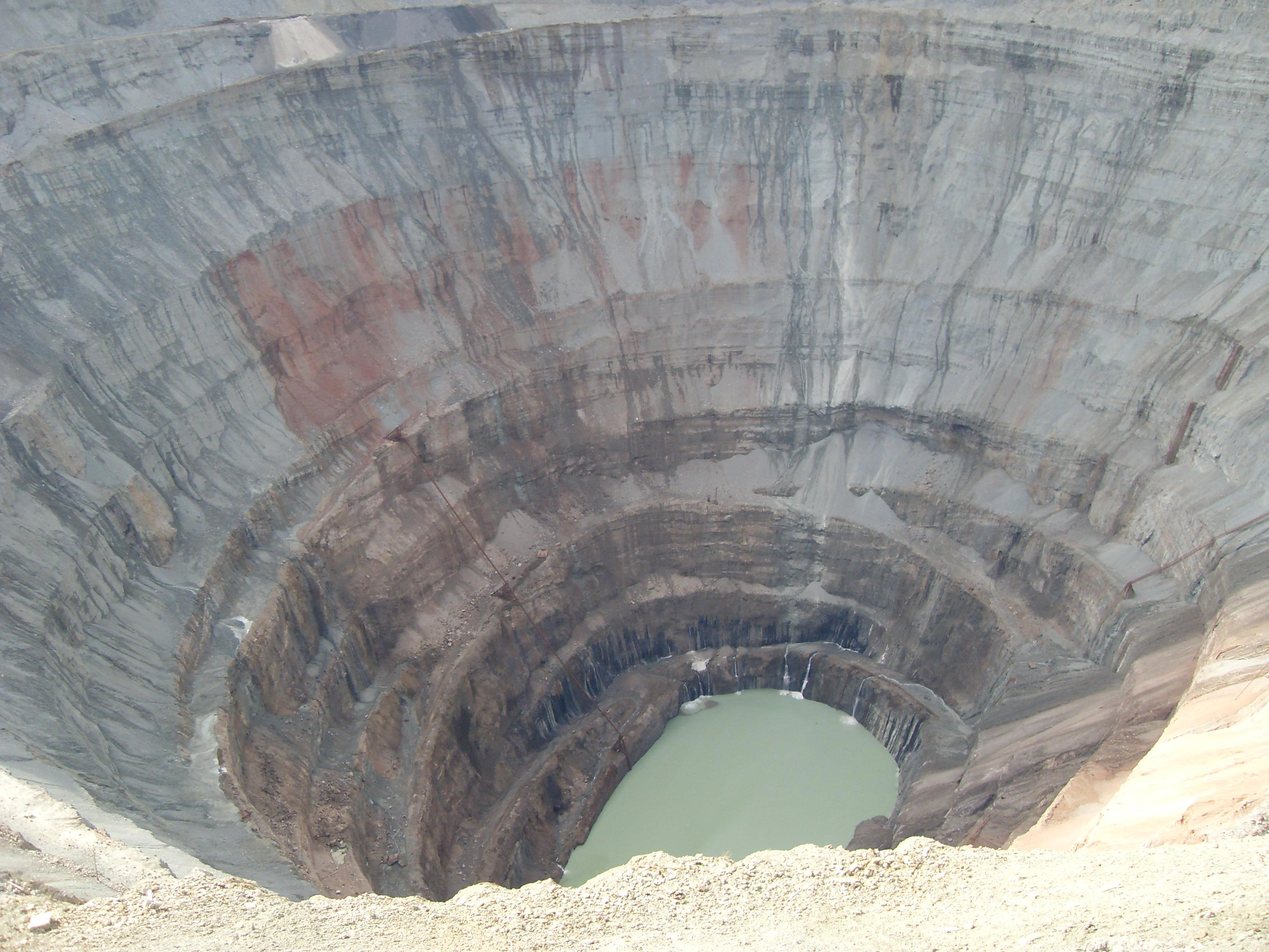В Мирном, дырку с алмазами открытым способом уже докопали, теперь копают из шахт.