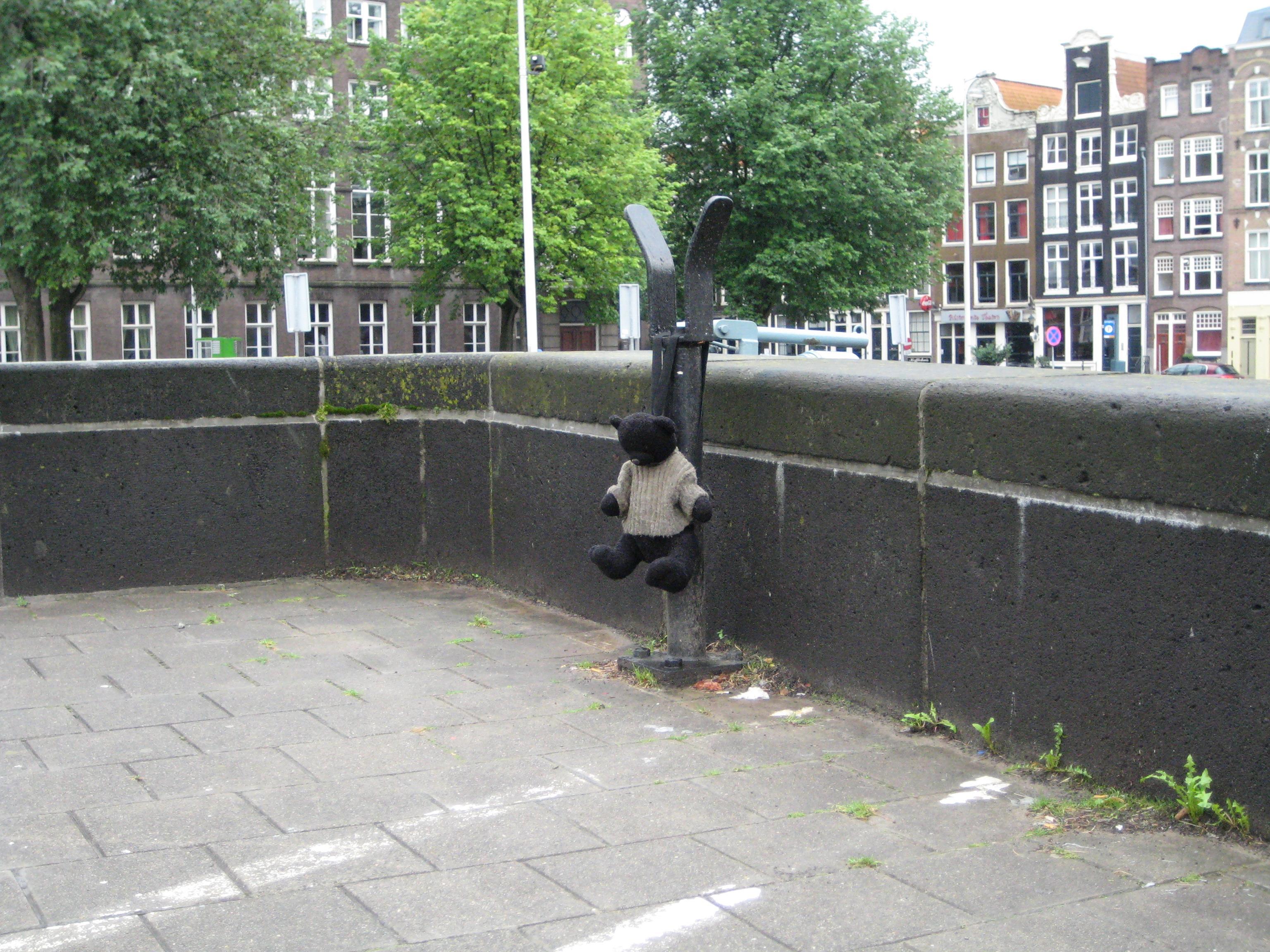 А вот и медведь. Брошенный, потерянный, в мокром свитере крупной вязки. Мороси не видно, но она есть. Такой вот символ Амстердама у меня. Грустный. Долго боролся с желанием забрать его с собой. Был бы мне попутчик в моих путешествиях. Мог бы слать потом открытки своим голландским медведям из Ямбурга, Якутска и Мирного. Что только не придумывается на трезвую голову?