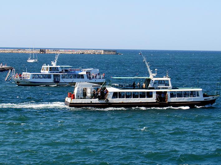 Катерки на 250 посадочных мест которые возят людей на Северную сторону.
