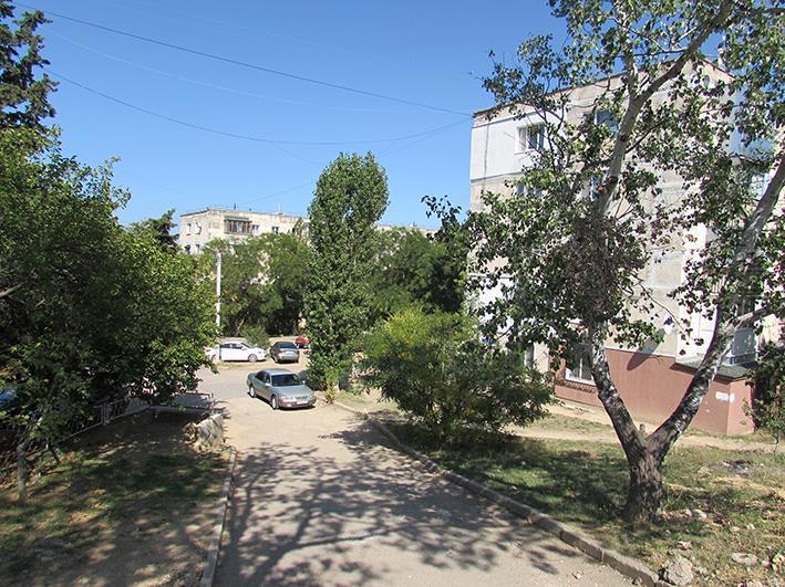 Голубая "горка"- гостиница наводел. Она нависает над пляжем "Хрустальным" (или по местному- "Хрусталка"), За ней- Институт Биологии южных морей, и Штык и парус.