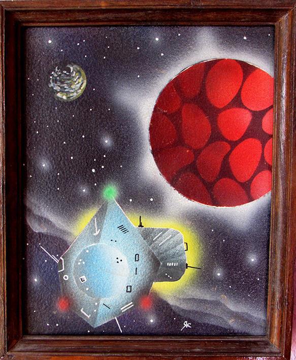 Вечером - уехал к другу на дачу и вот там меня ждал очередной сюрприз- он показал мне мою картину которую я ему подарил в 1994 году. То же аэрограф, но про космос...