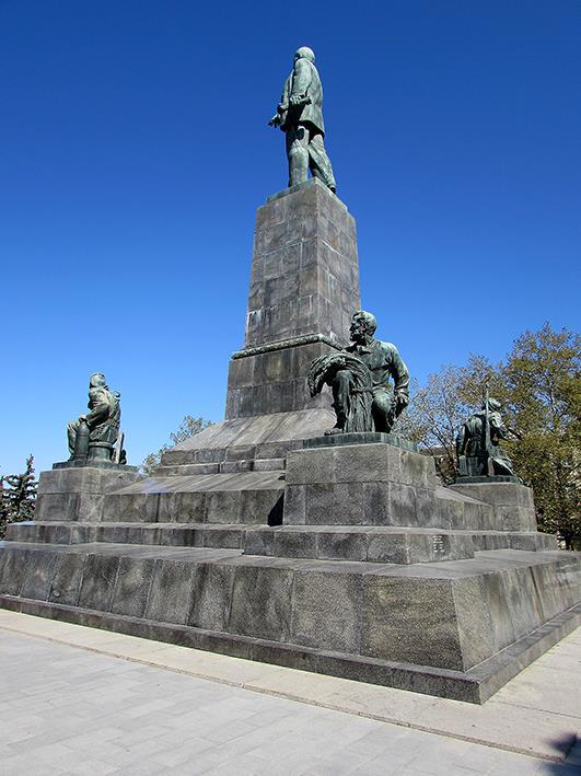 У памятника Ленину по бокам четыре фигуры- матрос, солдат, крестьянин и рабочий.