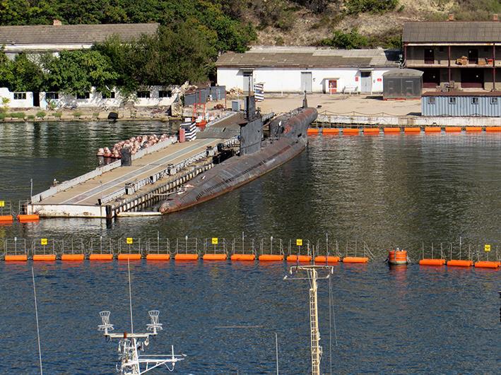 Шёл по дороге вниз, к вокзалу и снимал окресности. Это подводная лодка проекта 633, с экспериментальным размещением ракет в носу лодки (корабль- корабль).