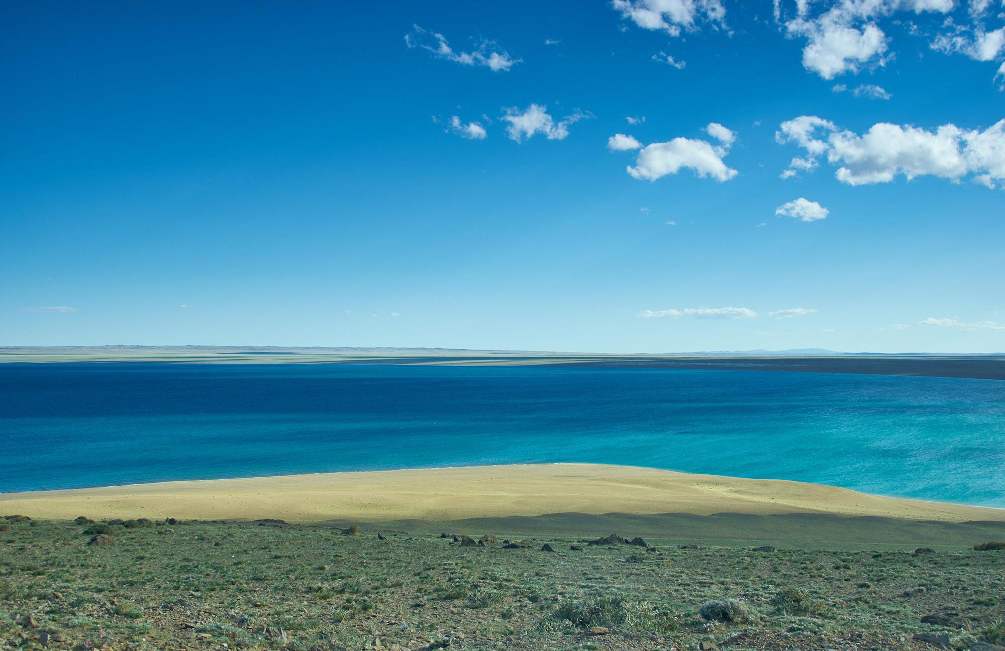 Еще через пару часов, пути пробиваясь сквозь многочисленные «перекрестки», мы внезапно выкатываем к озеру Хяргаз. Оно огромно и необычно, около берегов замечаем гэры, на той стороне водной глади высится огромный старый вулкан, придавая пейзажу этакий неземной вид. Мы в долине Великих озер.