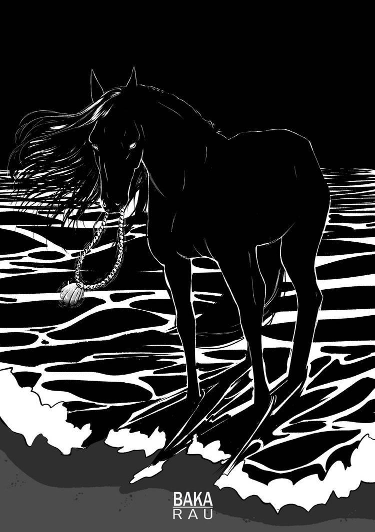 Есть своя грозная лошадка-хищник и в преданиях Скандинавии. Зовут ее бекахестен, буквально «ручейная лошадь». Но живет бекахестен не только в ручьях, но и в реках или даже море. Чаще всего его можно видеть в тумане (не знаю как у вас, а у меня мороз по коже пошел — вот что за лошадку видел Ёжик из знаменитого мультфильма!) Обычно бекахестен предстает в облике великолепного белого жеребца, но может быть и другой масти: серой в яблоки, черной или даже голубой. Он так хорош, статен и могуч, что человек просто не может удержаться, чтобы не сесть на него верхом. А если сядет, то слезть, как и в случае с кельтскими коллегами бекахестена, уже не удастся. Коварный жеребец немедленно прыгнет в воду вместе с всадником и потопит его.