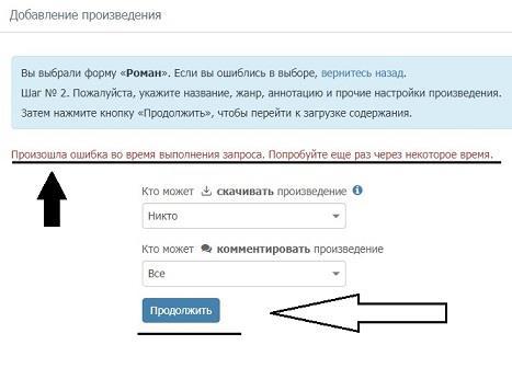при загрузке произведения ПОСТОЯННО выходит такая хрень. Давлю на предложенную кнопку до посинения, и так каждый раз. Писал в поддержку уже раза три. И всё как всегда. Уйду я отсюда туда, где всё работает (в мир иной)