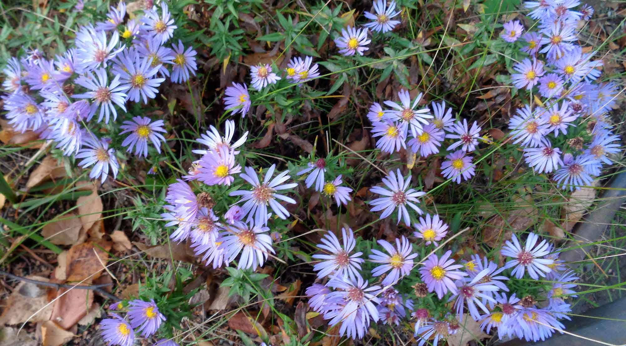 Альпийская астра. У нас тут не Альпы, но она в диком виде цветёт по всем закоулкам: