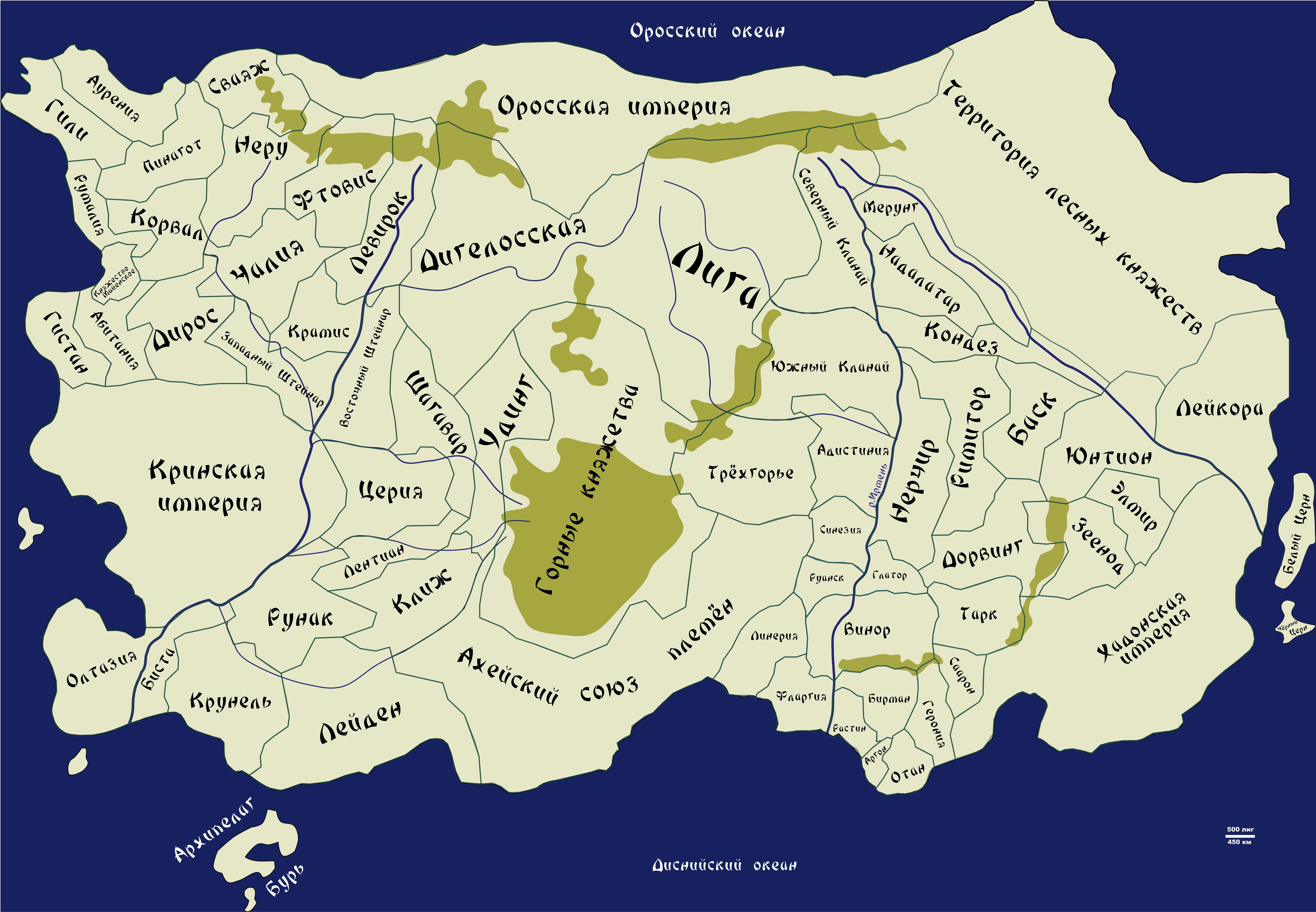 Масштаб - можно ориентироваться по Винору. Он примерно на треть больше современной Франции.