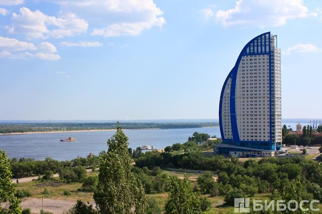 Это (справа на фото) жилой комплекс "Волжские Паруса" - несомненно одна из красивейших построек Волгограда за последние три - четыре десятилетия (сдан в 2003 году), к тому же прекрасно вписавшаяся в местность. Во время его проектирования были очень большие сомнения в том, что эдакие громадины можно строить в этом месте - рядом с двумя поймами: Волги и Царицы. Во многом благодаря стараниям волгоградского архитектора Эльвиры Бондаренко (сам проект был сделан в Москве) он всё же был построен. Как ей удалось доказать, что можно? "Элементарно, Ватсон!" - она, как коренная жительница города, прекрасно знала о том, что когда-то было на пустыре, который предлагался под его строительство. А стоял на этом месте самый большой жилой дом Царицына - дом купца Голдобина. На первой фотографии он обведён овалом и хорошо чувствуются его размеры:
