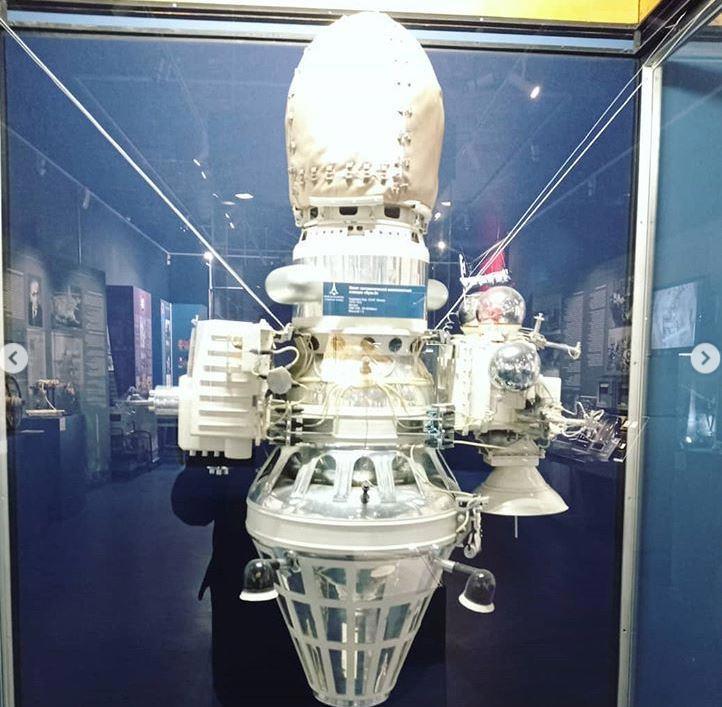 Перед входом - спускаемая капсула спутника БИОМ, изучавшего воздействие космоса на животных: