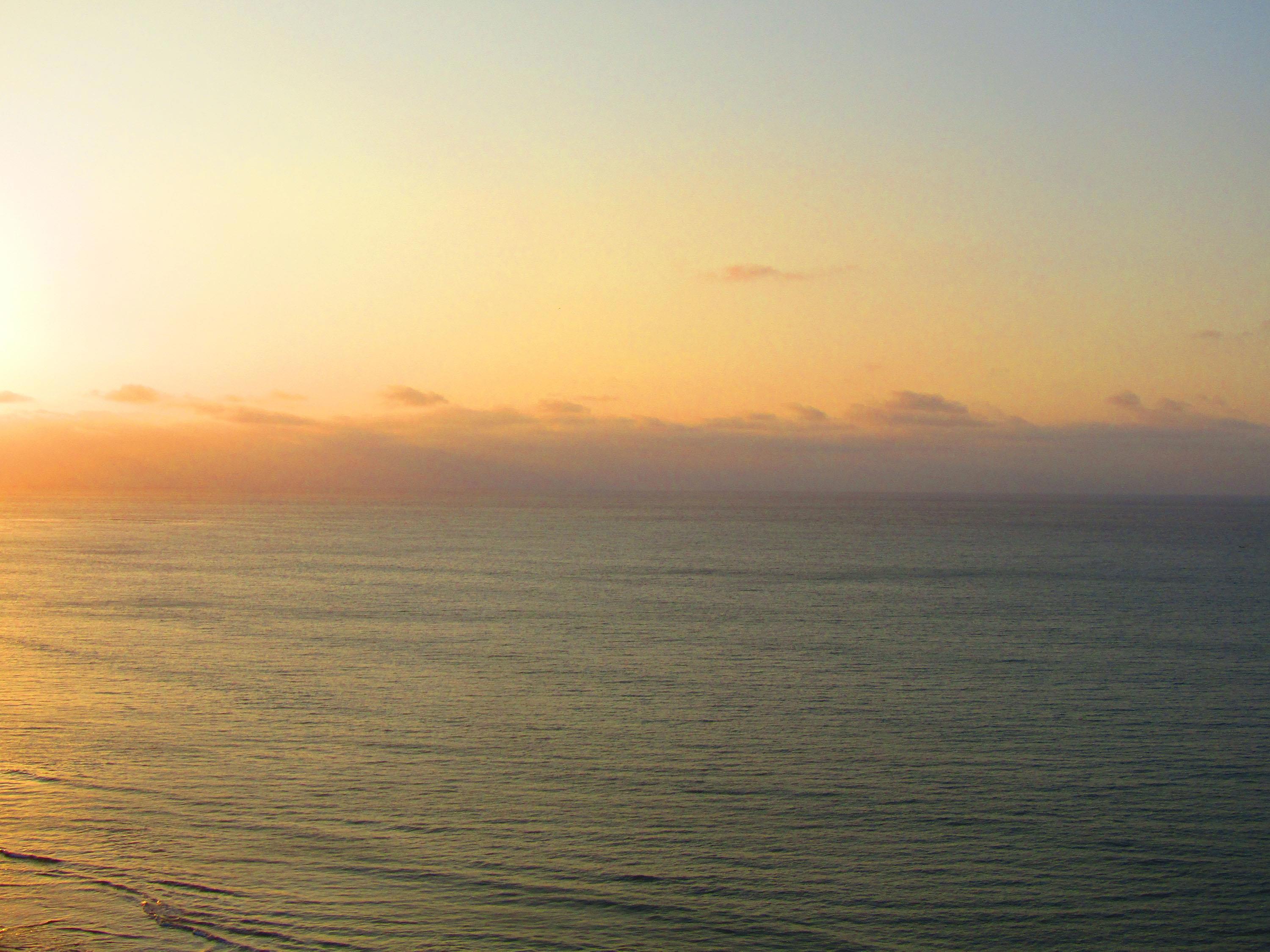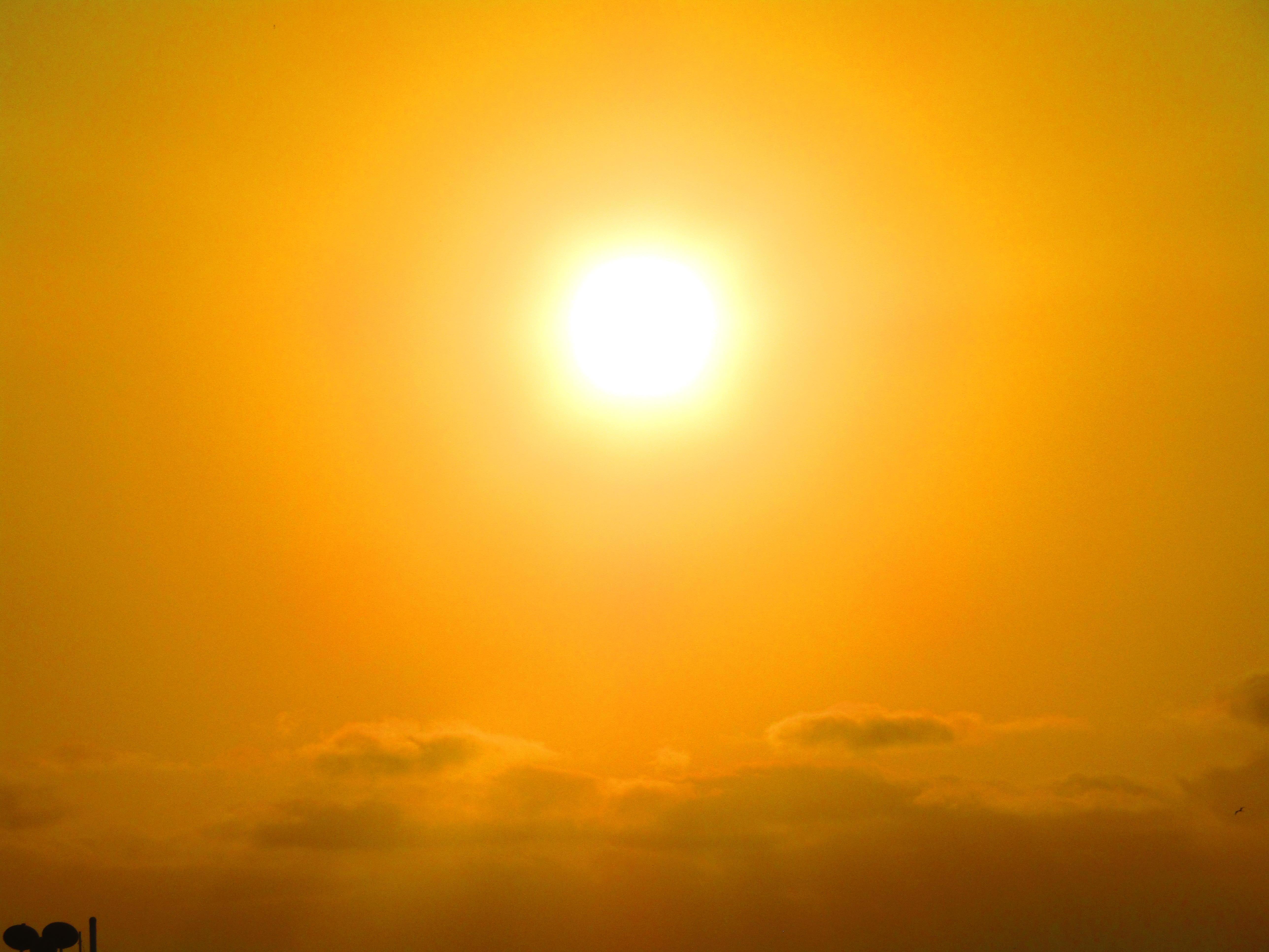 Если без облаков, то он чисто золотой и золотом этим окрашивает все, на что падает.