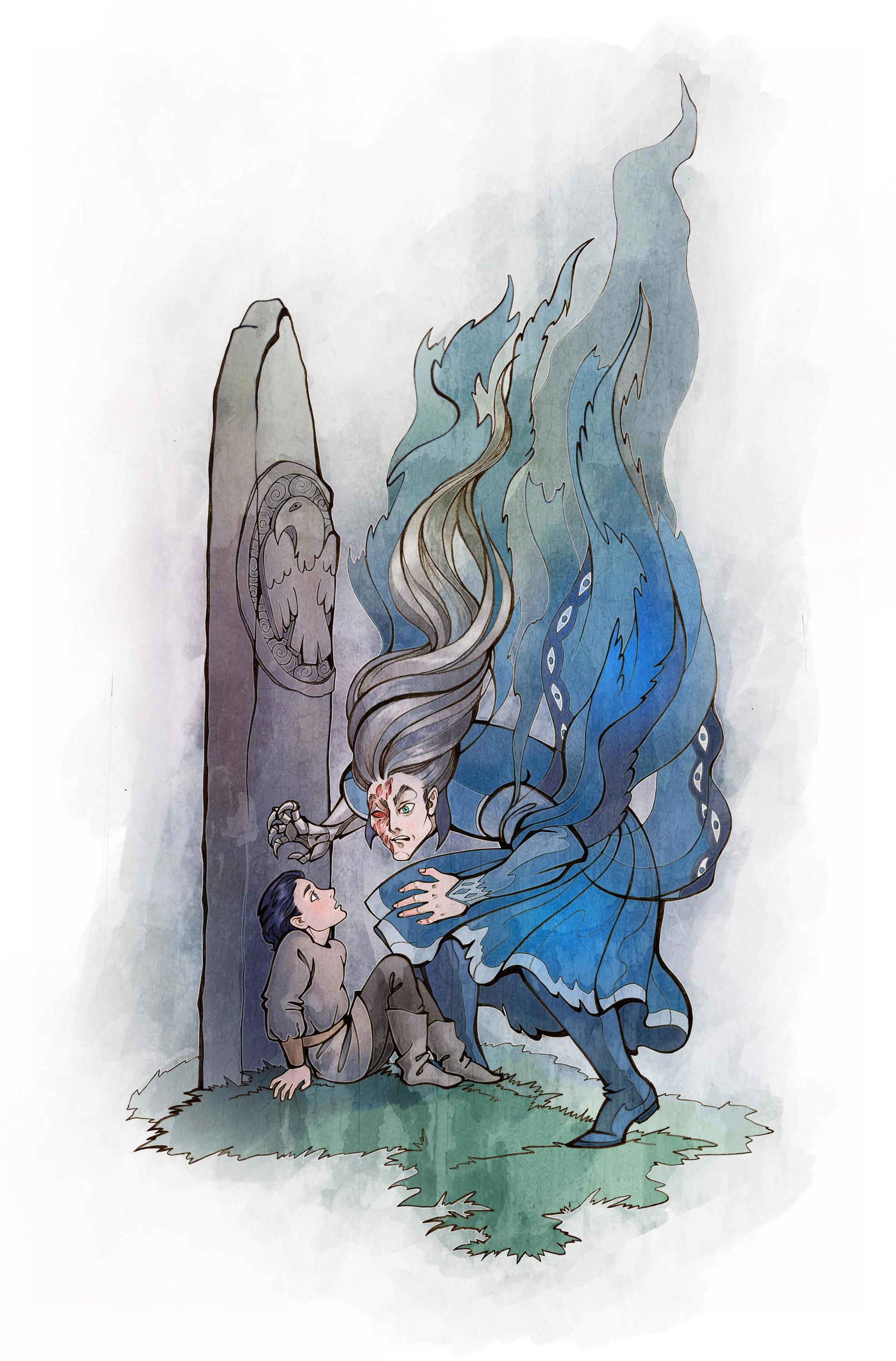 Для Николаса Риана сшила меховой костюм с забавным хвостиком, а Мидрир вырезал из ели маску, которую мальчик расписал углём. Гвидион потешался, что в таком виде ученик похож на шаловливого козлёнка.