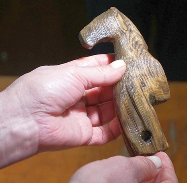 Хочу заметить, что такие же украшения делали не только из металлов. Вот что-то типа медальона, который точно куда-то пришивался, но сделанный из дерева:
