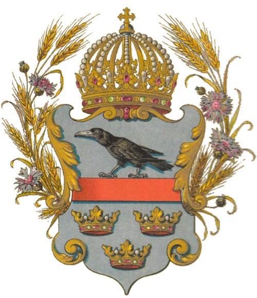 Там есть один забавный герб, в левом верхнем углу щита на груди у двуглавого орла. Вот он в оригинальном виде: