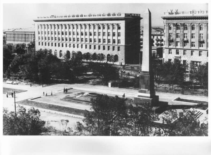 Автор: ЛиСиЦаИтак, что же получилось? Здание практически разобрано под застройку, после чего выясняется, что запланированной застройки не будет. На помощь приходят две "палочки-выручалочки" - два великих (не побоюсь этого слова) архитектора: уже упоминавшийся автор улицы Мира Василий Николаевич Симбирцев (1901-1982), бывший в пятидесятых годах главным архитектором Города, и Ефим Иосифович Левитан (1915-2007). Второй, кстати, похоронен на центральном кладбище Города - я всегда отдаю ему дань памяти, когда прихожу на могилы своих близких и прохожу мимо его. Их новый проект, конечно, не копия "Столичных номеров", но новое здание похоже на старую гостиницу и построено полностью на её фундаменте. Больше того, на месте Дома Лётчиков строится второе здание (сначала Совпартшкола, немного позже передано Мединституту) - очень похожее на первое , а на другой стороне Площади Павших Борцов ещё два здания в том же стиле: новое здание гостиницы "Интурист" и здание хорошо известное волгоградцам по нахождению в нём, в том числе, Театра Кукол. "Равновесие" сторон Площади достигнуто почти идеально. Что же за здание стоит на месте "Столичных номеров"? Это вновь гостиница. Сначала она называлась "Сталинград", а затем, как и сам Город, была переименована в "Волгоград". На этих фотографиях пятидесятых годов двадцатого века она справа, а слева нынешний Медуниверситет: