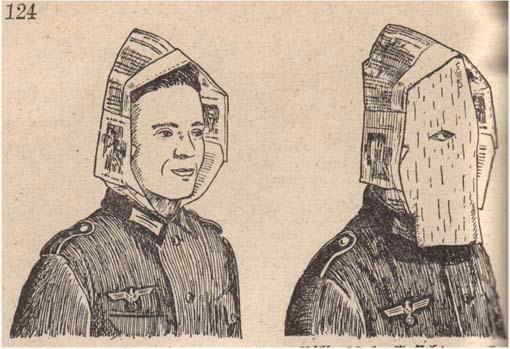 Многие удивлялись - почему авиацией в Сталинградский котел доставляли старые газеты. А не было больше ничего, чтоб для сугреву. Вот фотографии картинок из немецкой инструкции - как газетами утеплить голову. А лицо - берестой.