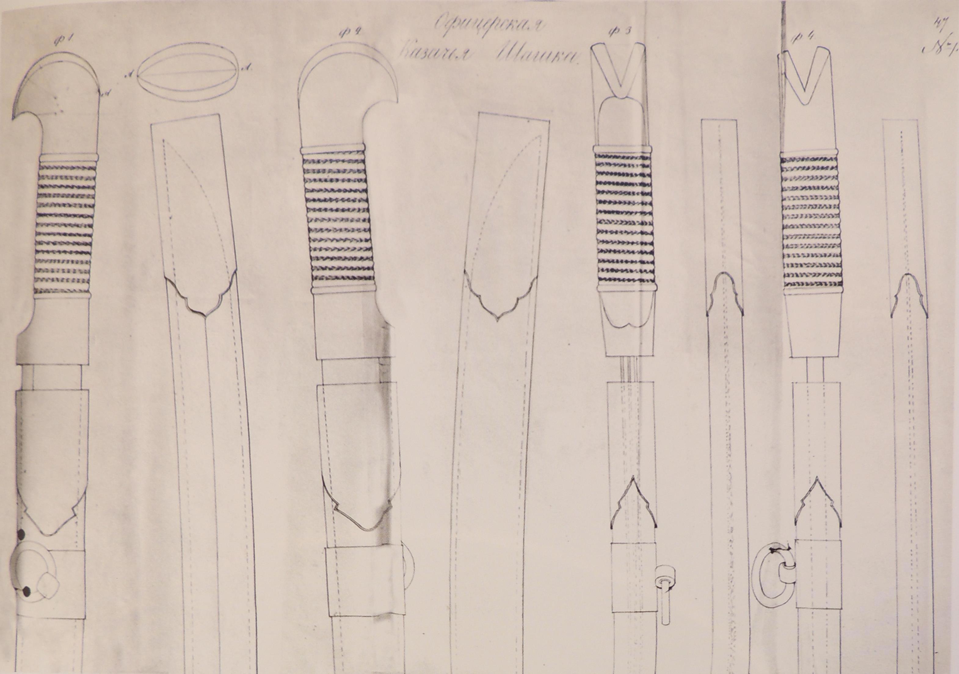 Произволу в вооружении казаков был положен конец в 1838 году, когда все казачьи войска, за исключением Кавказского и Сибирского получили специально спроектированную шашку. В 1839 году были утверждены чертежи по всему огнестрельному и холодному оружию, употреблявшемуся в русских войсках. Составление чертежей было вызвано теми недоразумениями, которые постоянно имели место при приеме оружия с завода, так как одними описаниями было слишком трудно руководствоваться при детальной приемке различного оружия. Однако, даже несмотря на чертежи возникало множество недоразумений вследствие того, что многие детальные размеры не были согласованы с утвержденными образцами. Так Департамент Горных и Соляных дел, к которому был приписана Златоустовская оружейная фабрика ссылается в 1846 году при приёме оружия на Свод Военных постановлений том 9 статью 836, где сказано «что оружие принимать по образцам», и пишет следующее «… вероятно, и приемщики, присланные из полков в Арсенал, руководствуются той же статьёй: ибо в законе о приеме оружия по чертежу нигде не упомянуто; почему и Арсенал более держится образцов, а не чертежей, которые и по ныне не совершенно сходны с образцами, а потому фабрика должна находится в беспрестанном опасении, что оружие будет забраковано – или потому что оное не сходно с образцами, или потому, что вес его не сходится с назначенным в законе».