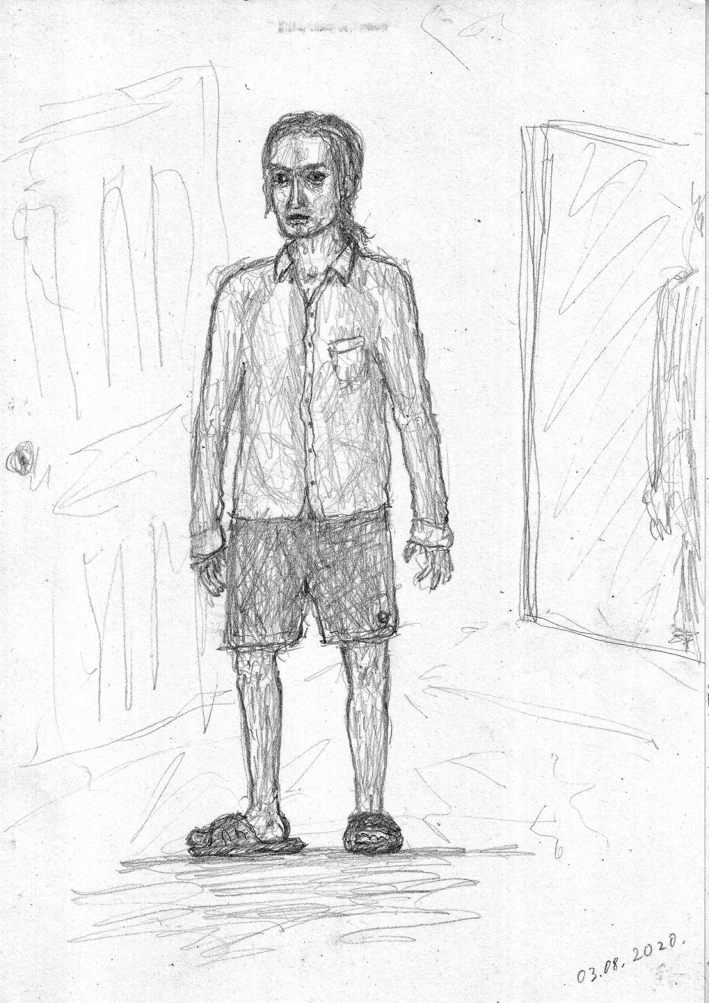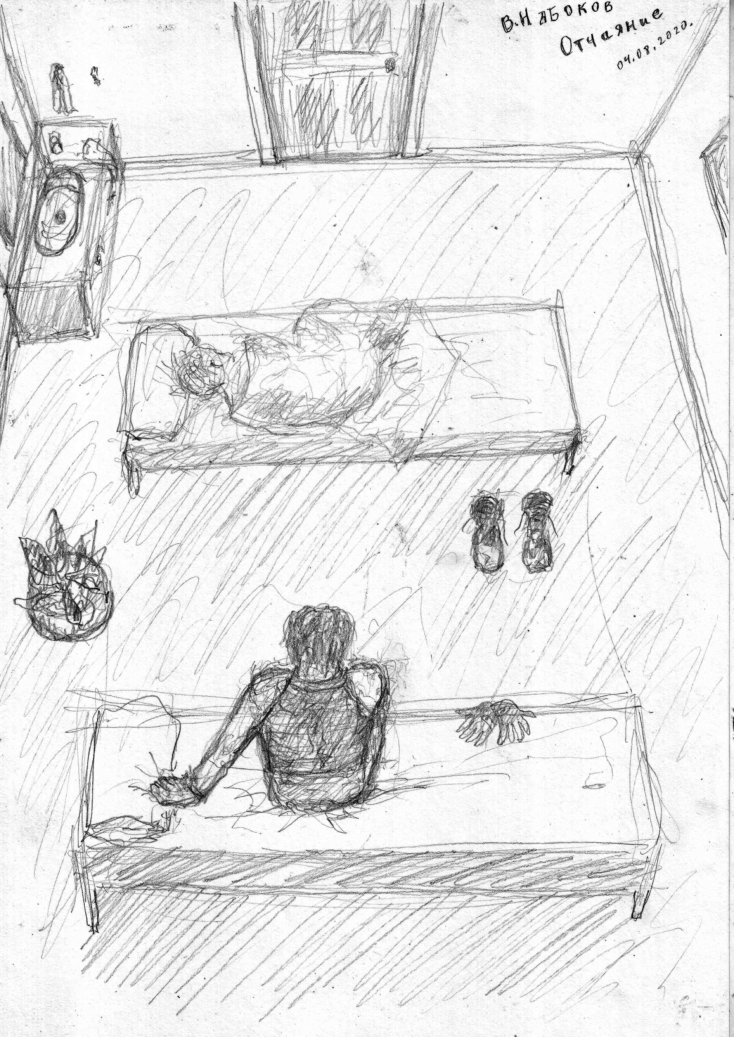 (Скетч-набросок иллюстрации к рассказу, и экзистенциальный автопортрет).