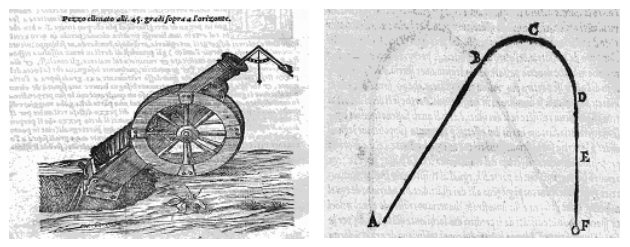 Автор: MorcelebС появлением мортир артиллеристы вполне обоснованно заинтересовались, а как бы так заранее рассчитать выстрел, чтобы не тратить порох и ядра напрасно, потому как стрельба из пушек - это затея недешевая. Первым, кто оставил весьма обширные заметки по баллистике считается Леонардо "наше все" Да Винчи, но первым, кто приобрел широкую известность был Никколо Тарталья, теоретически обосновавший, что наибольшую дальность орудия будут обеспечивать при углах наклона ствола около 45 градусов. При этом, если заглянуть в труды Тарталья, можно увидеть, что в его представлении траектория была не параболической: