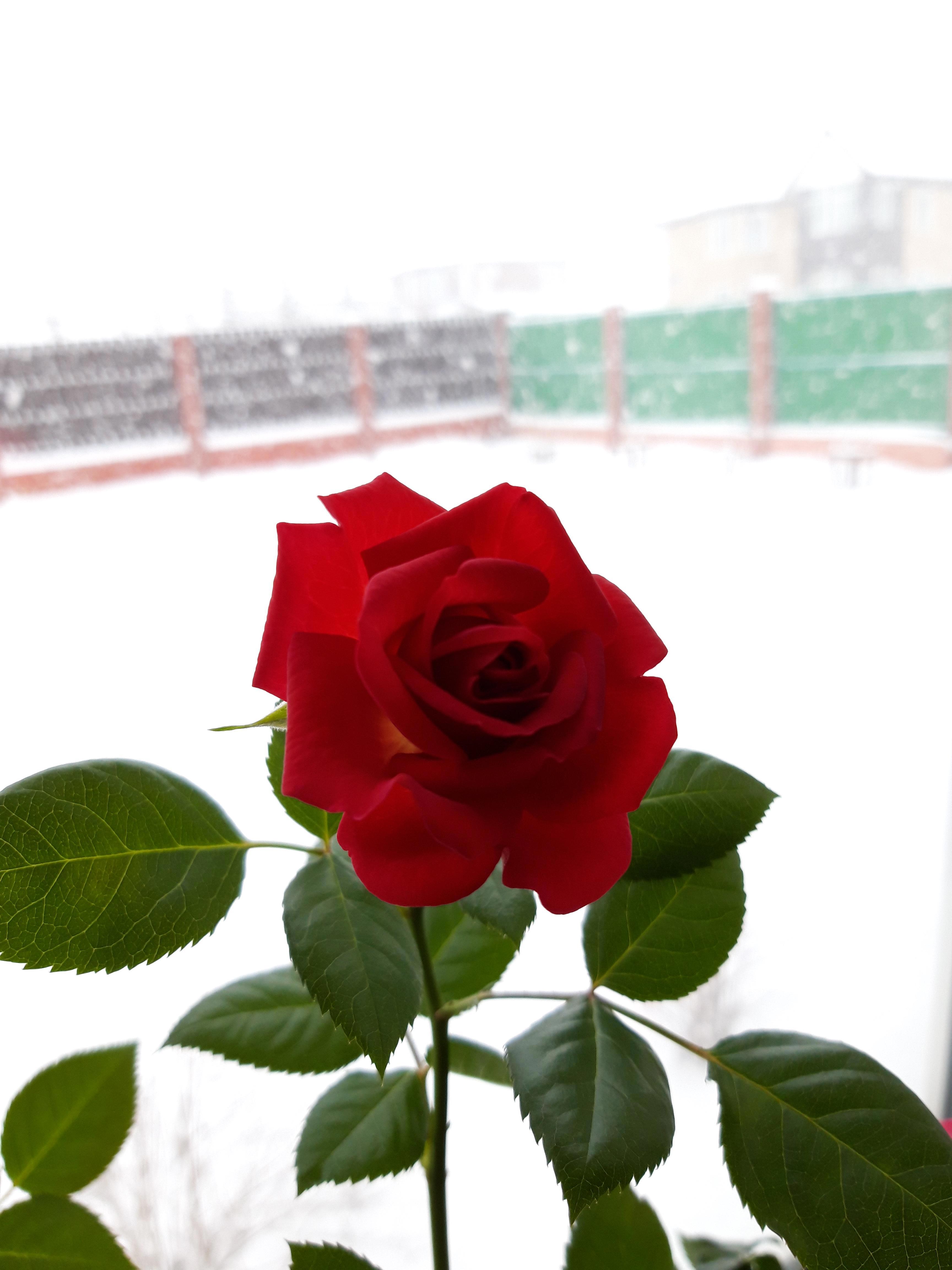Роза цветет на подоконнике, радует и пахнет летом))