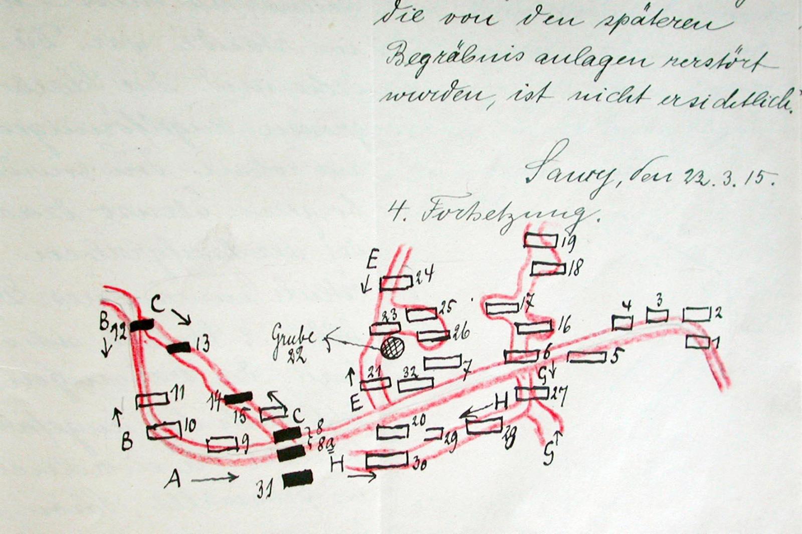 28.03.15 капитан Пелеман (к сожалению, в том же году и погибший), составил "Записку о древностях, найденных к северу от Венизеля). Проплутав по штабам, "Записка" попала на стол Вильгельму фон Боде, генеральному директору Королевских музеев - как понимаю, главному в музейной системе Германии.