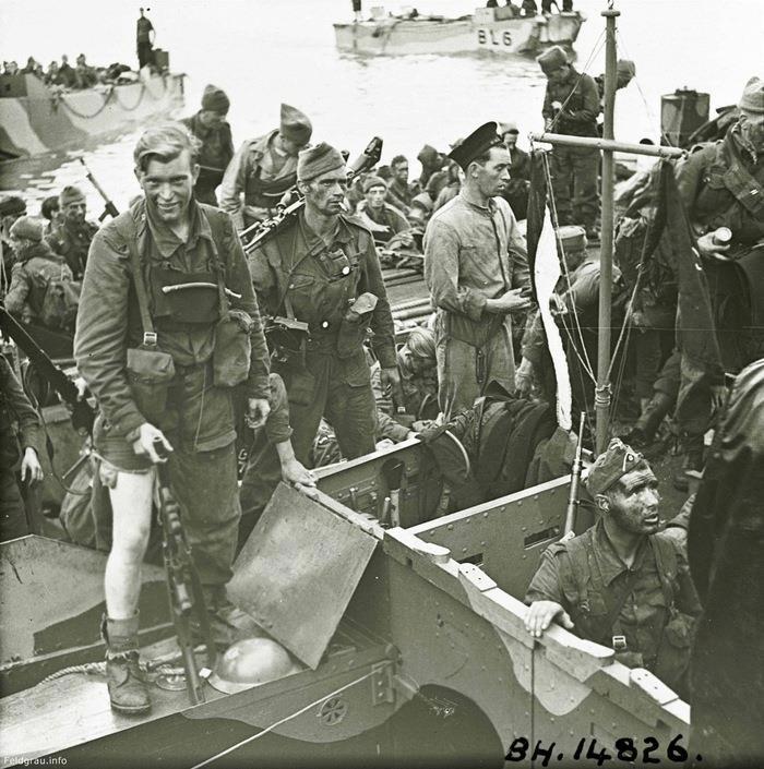 Уцелевшие после высадки в Дьеппе десантники вернулись на базу обратно. У парня справа внизу - немецкая пилотка. Трофей?