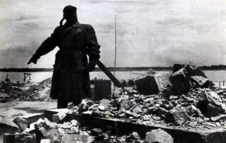 Затем начались бои за Город, и памятник оказался в месте самых ожесточённых сражений - совсем рядом Волга, к которой так рвались нацисты. Вот что творилось рядом с ним: