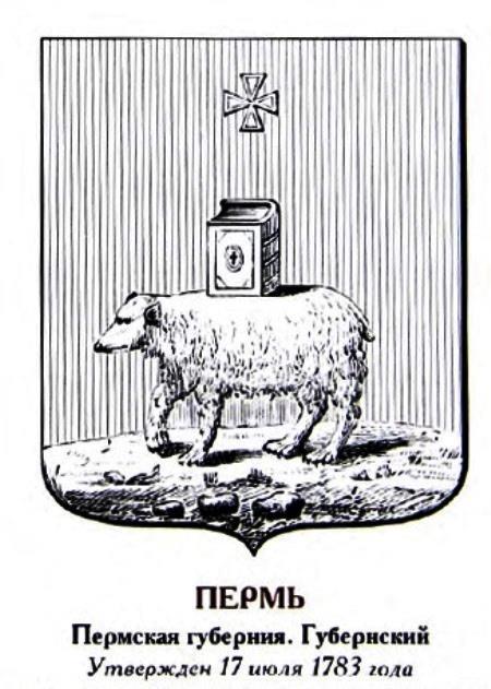 Автор: Вадим Нестеров aka Сергей ВолчокХотя в сопроводительном тексте действующего пермского герба говорится, что «серебряный медведь — символ природных богатств, окружающих город бескрайних земель», а «Евангелие (Золотая книга) — символ христианского просвещения, воссиявшая здешним обитателям», предки придерживались иного мнения. По крайней мере, официальное описание герба, принятого при Екатерине в 1783 году, гласило: «В красном поле серебряный медведь, на котором поставлено в золотом окладе Евангелие и над ним серебряный крест, означающий первое — дикость нравов обитавших жителей, а второе — просвещение через принятие христианского закона».