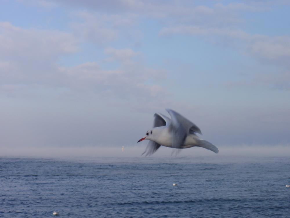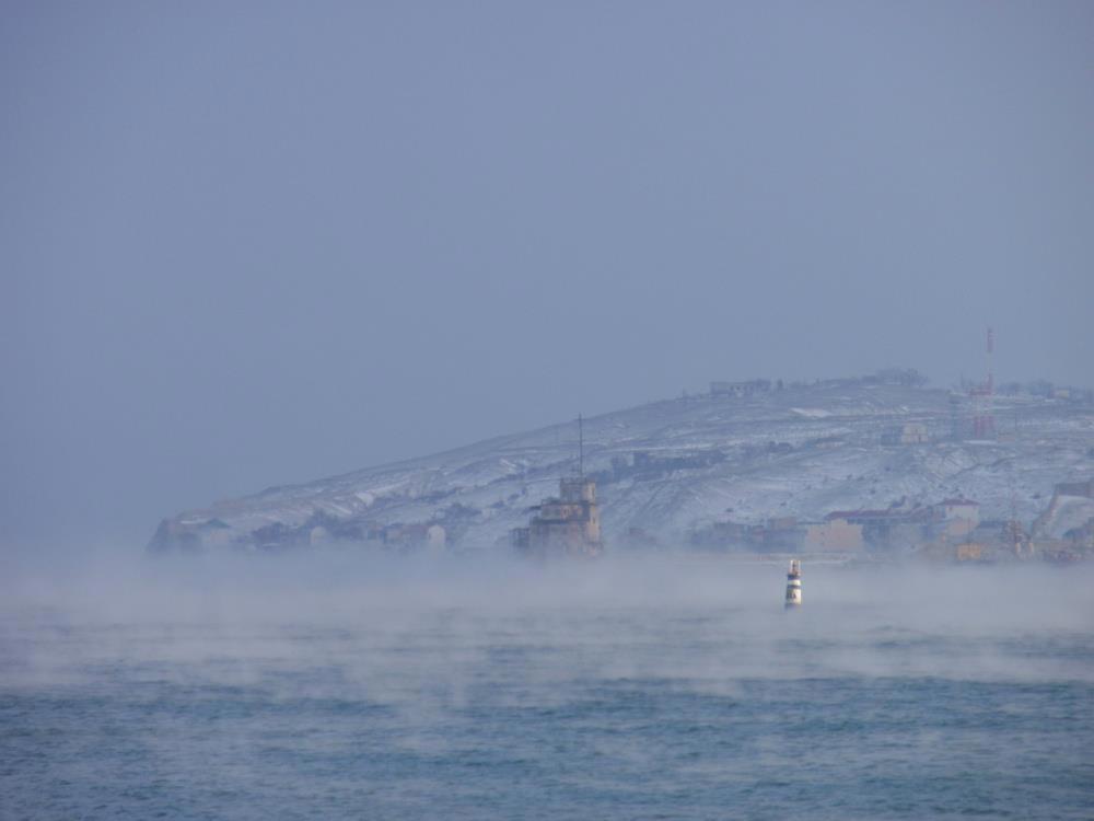 Пока залив сквозь снег и слякоть в морозном воздухе парит.