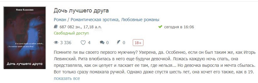 Автор: Ника КлимоваНу, вот и закончена работа над книгой "Дочь лучшего друга". Начиналась история, как шалость, а превратилась в 17 алок с хвостиком. Первое слово было написано 6 января, а последняя точка поставлена сегодня. Еще ни одна книга не давалась мне так легко и тяжело одновременно. Все же автору, наверное, стоит абстрагироваться от тех, о ком он пишет.