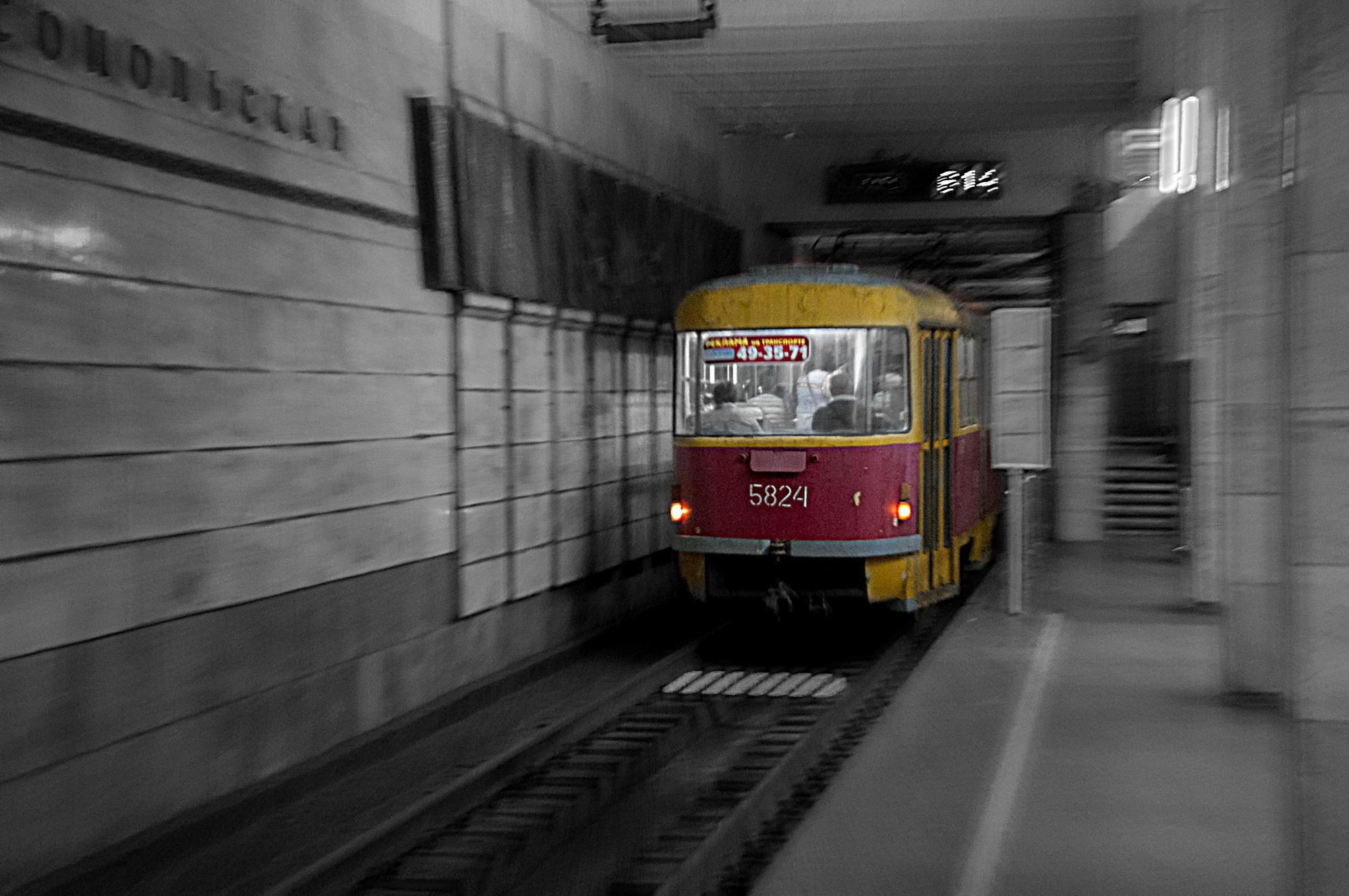 2003 год, почти там же, "Татра", следующая по маршруту "СТ", начинает спуск в подземную часть своего маршрута:
