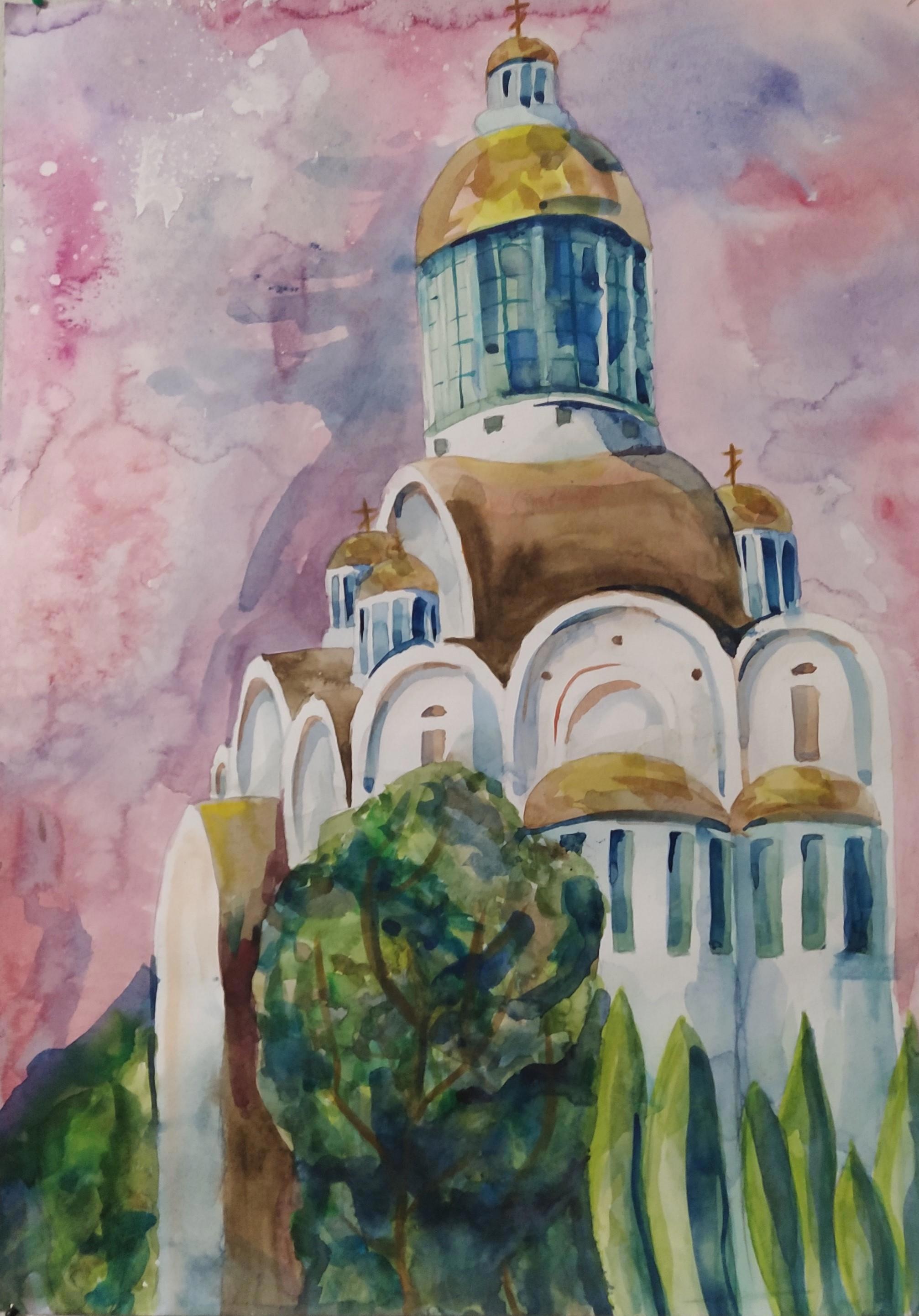 Автор: ДэморПопробовала нарисовать одну и ту же церковь акварелью и карандашами.