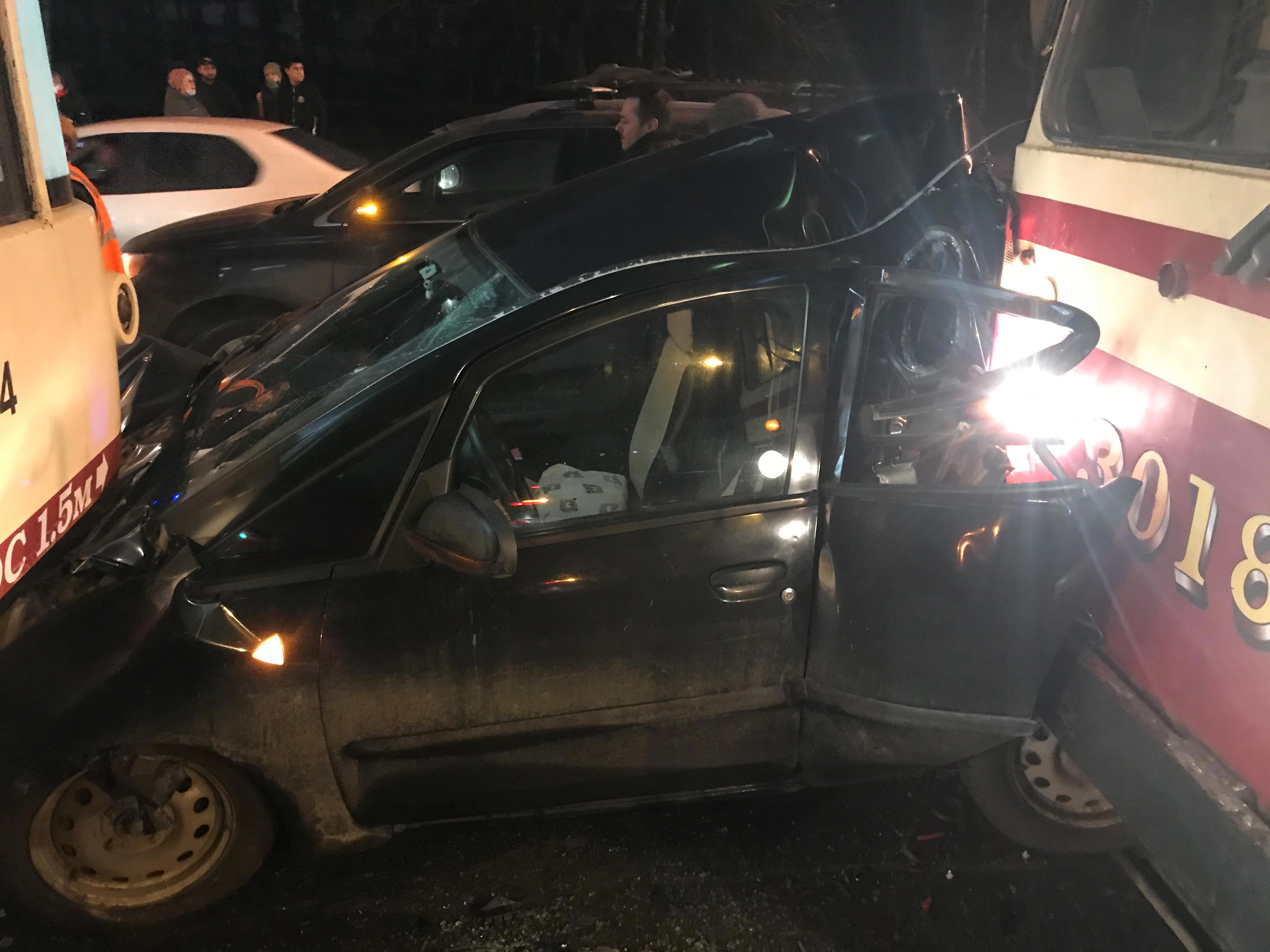 Автор: Илья БалахматовНесколько дней назад я попал в серьезную аварию. У идущего впереди трамвая отказали тормоза, и он покатился назад с пригорка. В общем, я удирал задним ходом как мог, но в итоге мое авто расплющило между двумя трамваями (я проехал задом метров 100, пока не упёрся в стоящий на путях трамвай)Слава богу сзади не сидела жена с ребёнком ( где они как правило и ездят), так как задницы у машины не стало от слова совсем, и сиденья уперлись в передние, ну и как сказали спасатели я родился в рубашке. Машина восстановлению не подлежит, ее изничтожило, как алюминиевую банку из под Колы.