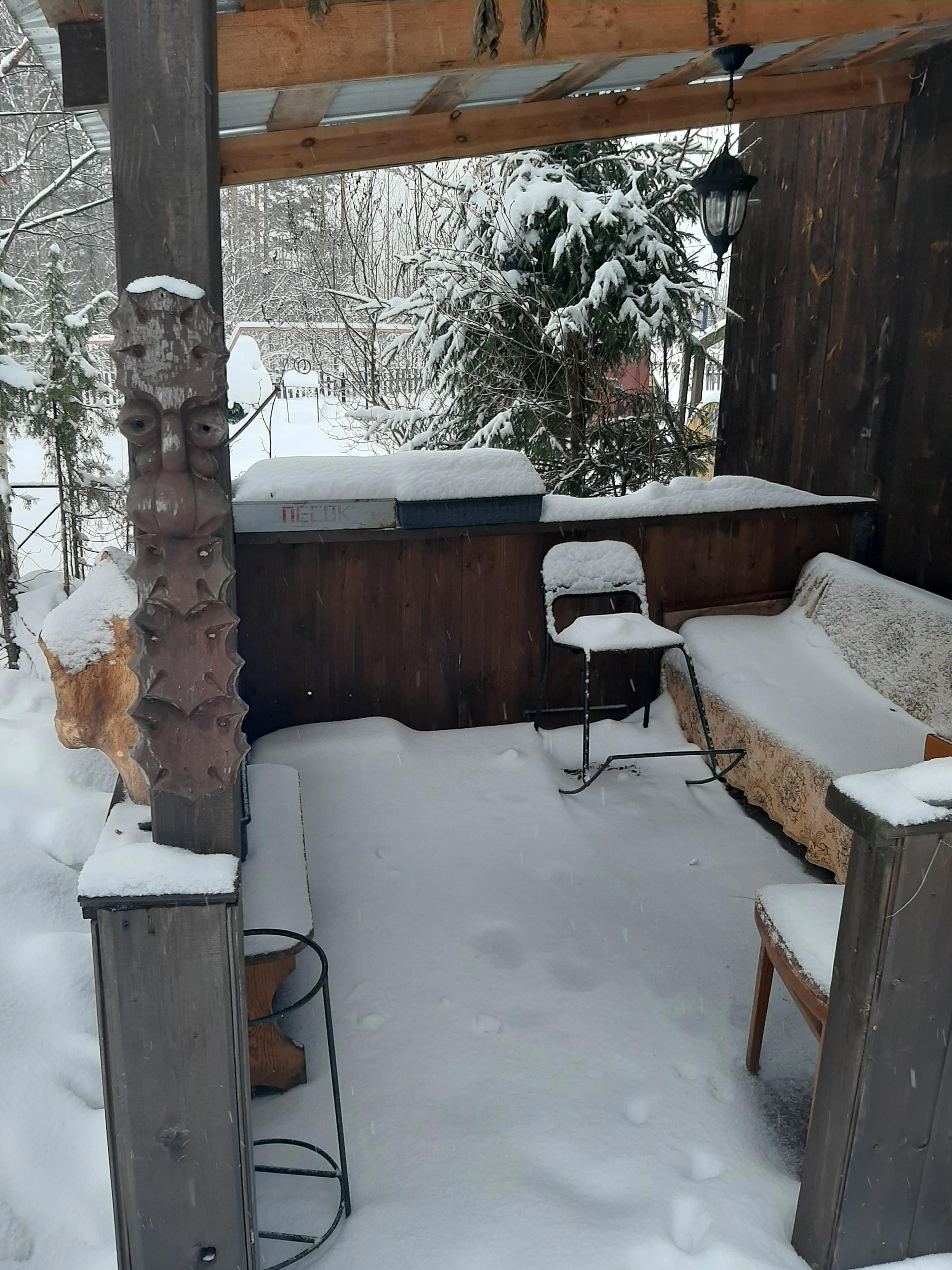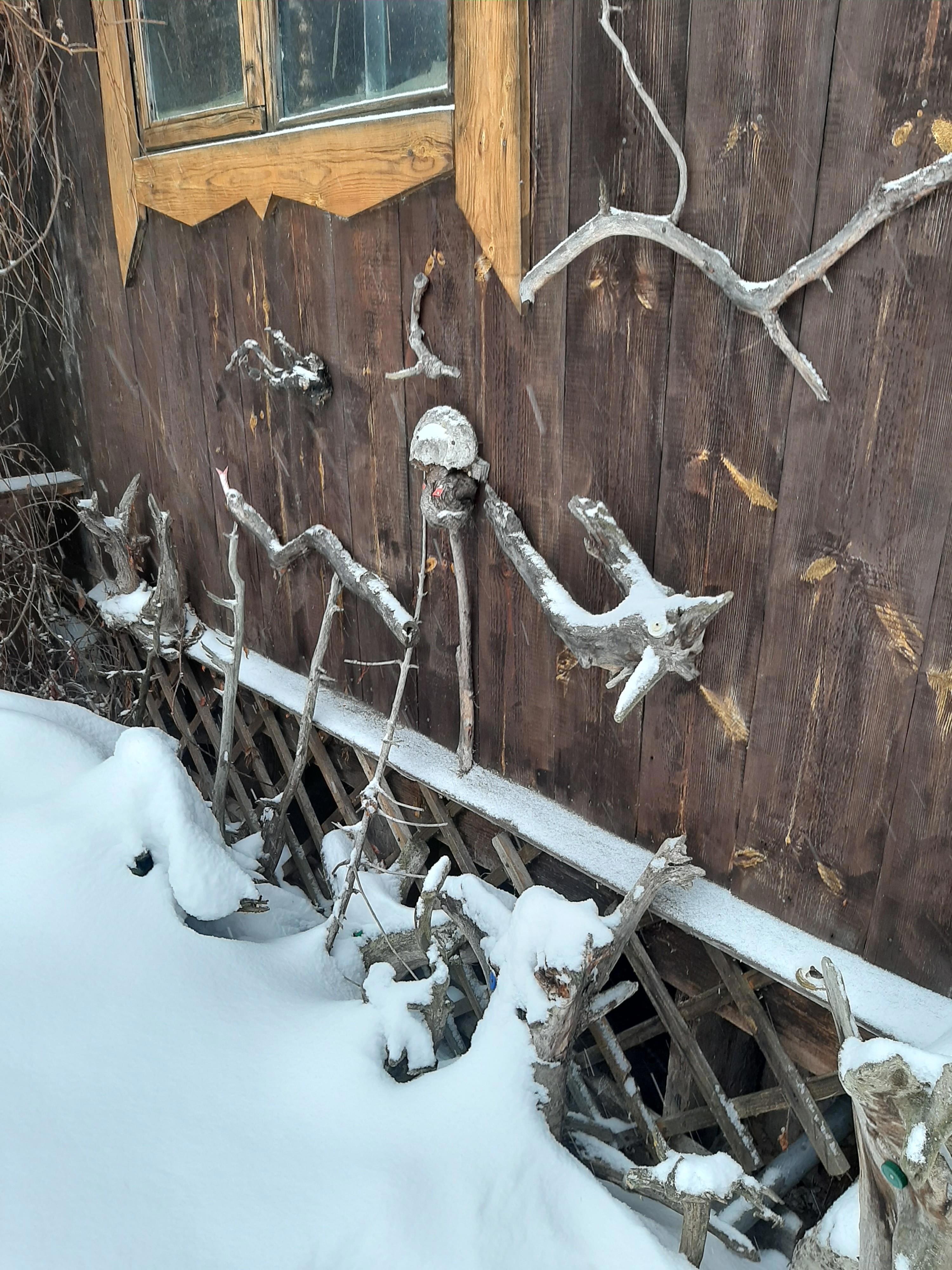 Специально прибитые ветки, напоминающие чудищ, занесены снегом...