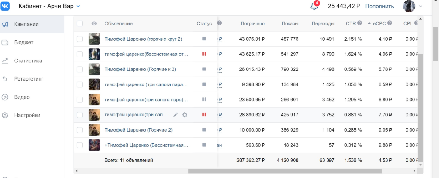 Сейчас цена клика для человека "с улицы" составляет 6-8 рублей. Это привело к тому что народ массово уходит с ВК. Идут в дзен, на яндекс. При этом у людей в голове абсолютно ничего не поменялось. Я как-нибудь на досуге объясню, почему через год там будет так же. даже готов заключить пари, допустим, на 50 к, если такой богатый простофиля тут всплывет.