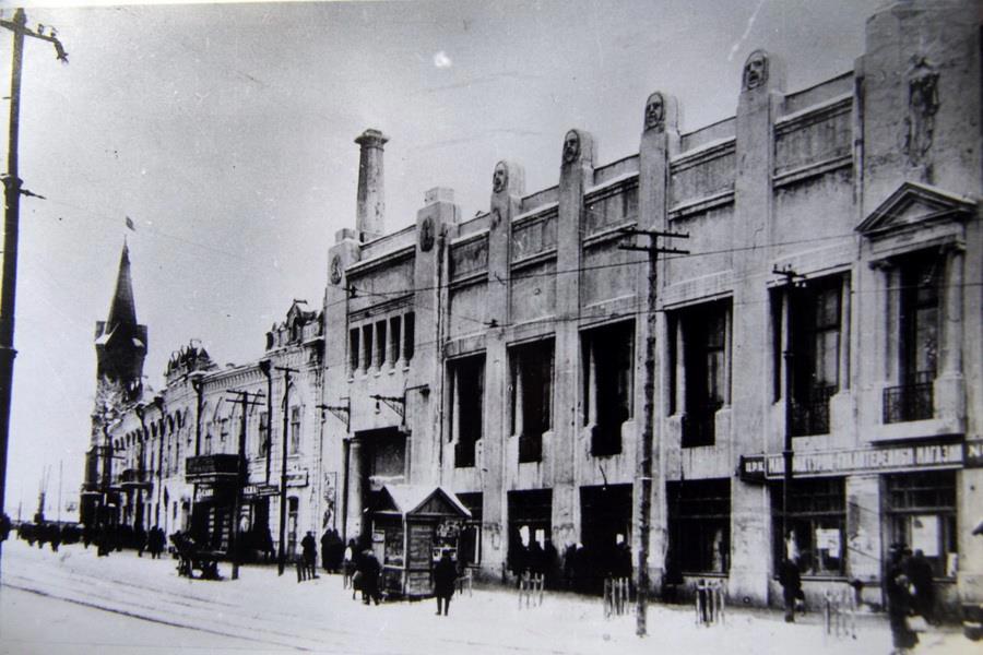 Поздняя осень 1942 года - уличные бои, часть здания на идущей слева направо улице Володарского (бывшей Спасской) видна через арку справа (здание слева просто-таки требует отдельной истории!):
