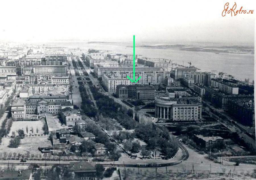Это выгоревшее изнутри, но не так уж сильно пострадавшее снаружи во время бомбардировки 23 августа 1942 года и последующих боёв здание Сталинградской Художественной Галереи, в которой в огне погибло множество картин, включая творения Айвазовского, Крамского, Репина, Рубенса и многих других великих художников.