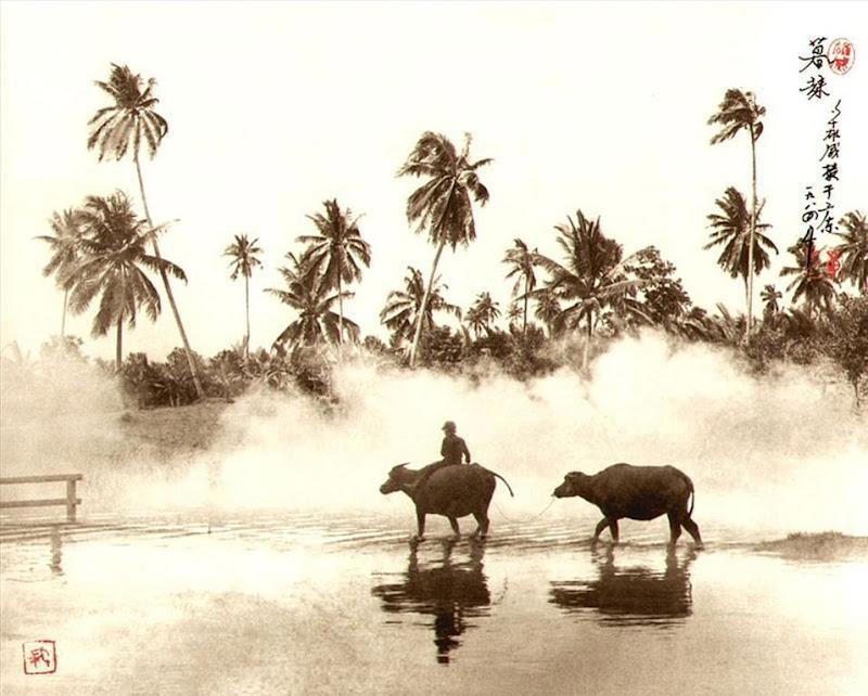 Добавил каллиграфию на снимок. Сохранив национальную живописную традицию, он привнес в фотографию азиатские минимализм и спокойствие, совершенно несвойственных для западной живописной или фотоэстетики. Используя различные техники фотомонтажа, он создавал меланхоличные и созерцательные фотографии Китая, который периодически посещал в те годы.