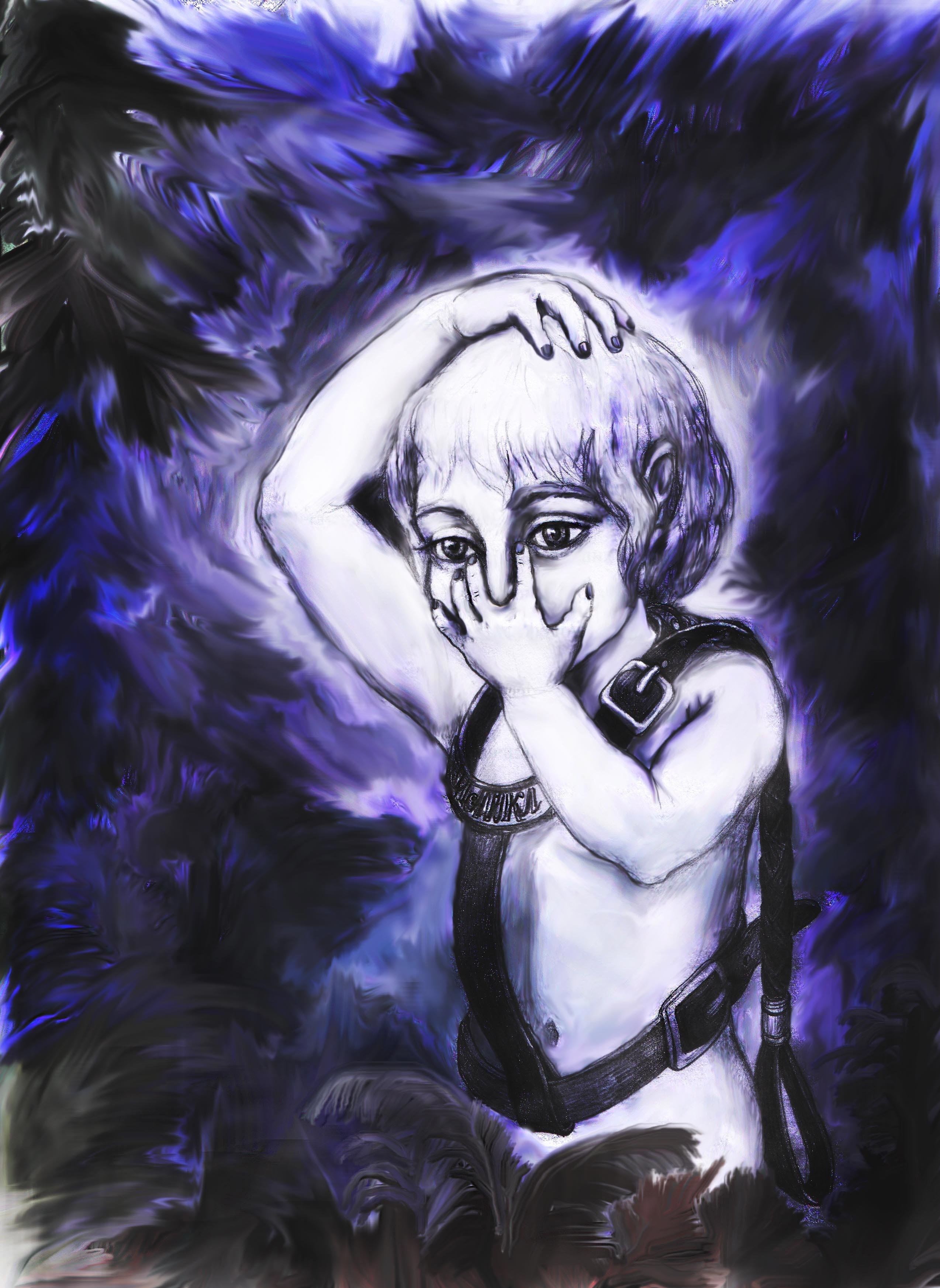 ...Это был маленький, лет трёх от силы, малыш. Короткие белые волосы топорщились в разные стороны. Бледная кожа заляпана грязью. А из одежды на бедном ребёнке был лишь ошейник - щенячья шлейка с выгравированным на металлической табличке именем "Майкл"!