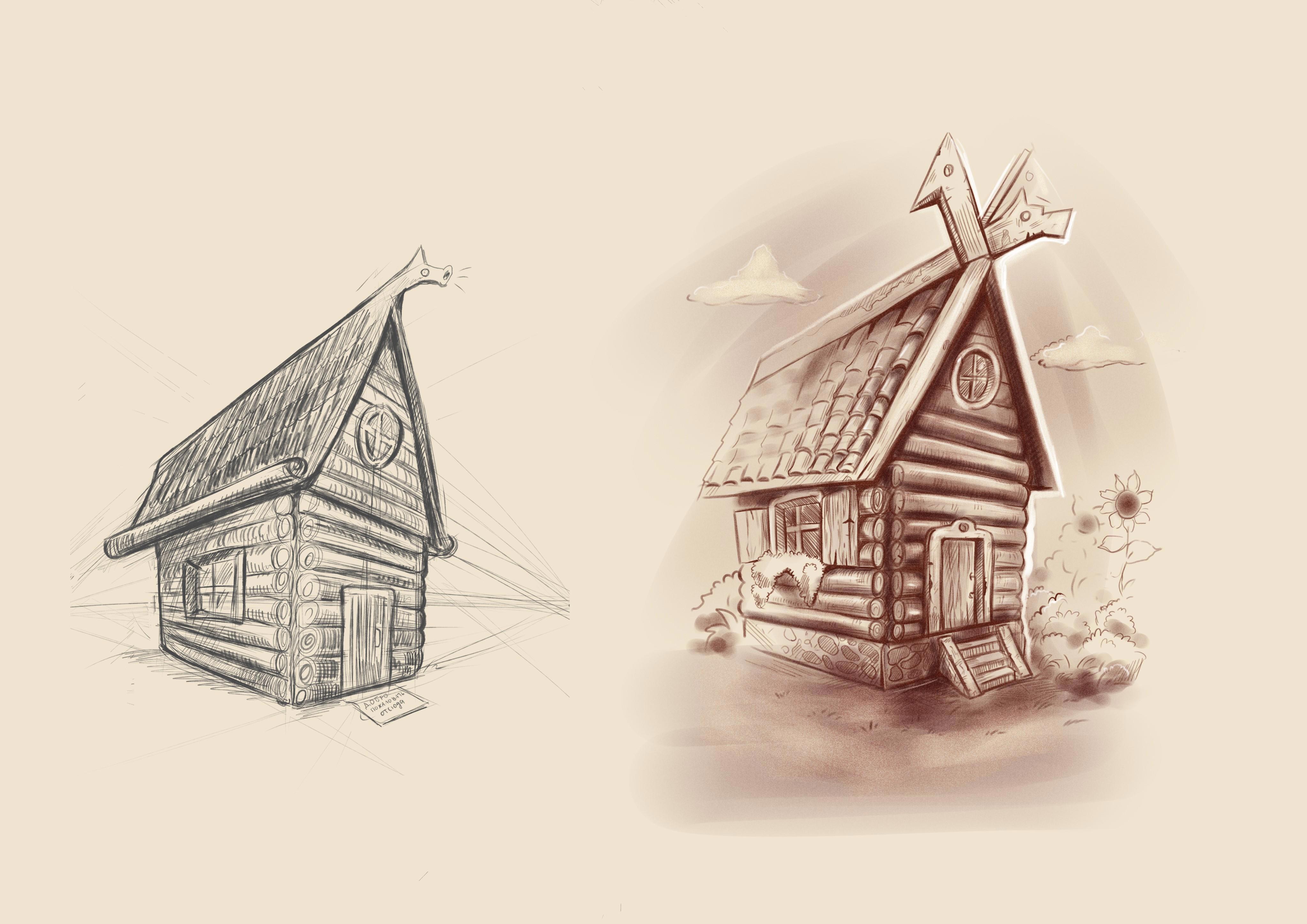Следующее задание - взять домик в изометрии и ай да оттачивать новые навыки. Дома я не умею рисовать вааапще, поэтому здесь первый этап для меня прошёл со скрипом. Ускорилась на лайне и штрихе. Я поныла, съела шоколадку, а потом как взяла и нарисовала это