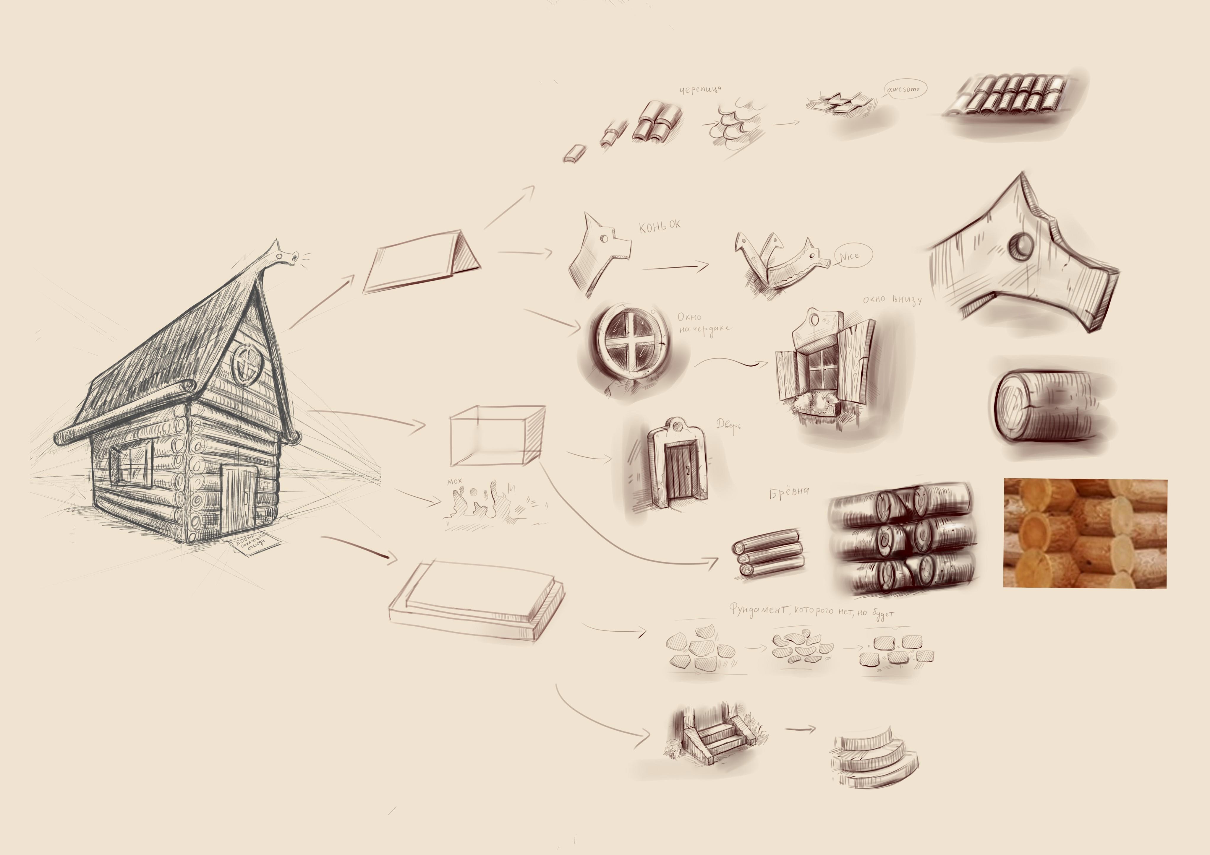 Суть следующего задания - взять свой недоделанный дом из первого задания и доделать. Да. И сделать это, следуя видеоуроку с платформы. Нужно проанализировать элементы построения, ибо мы, новвички, имеем свойство рисовать всё и сразу, не уделяя внимание мелочам.