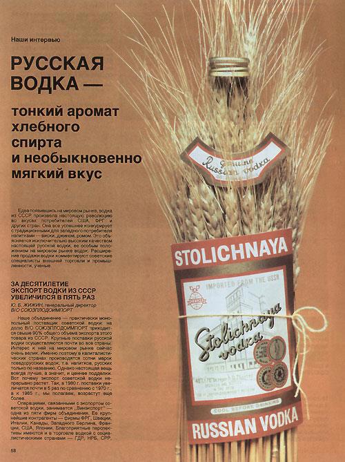 «Русская водка — тонкий аромат хлебного спирта и необыкновенно мягкий вкус»