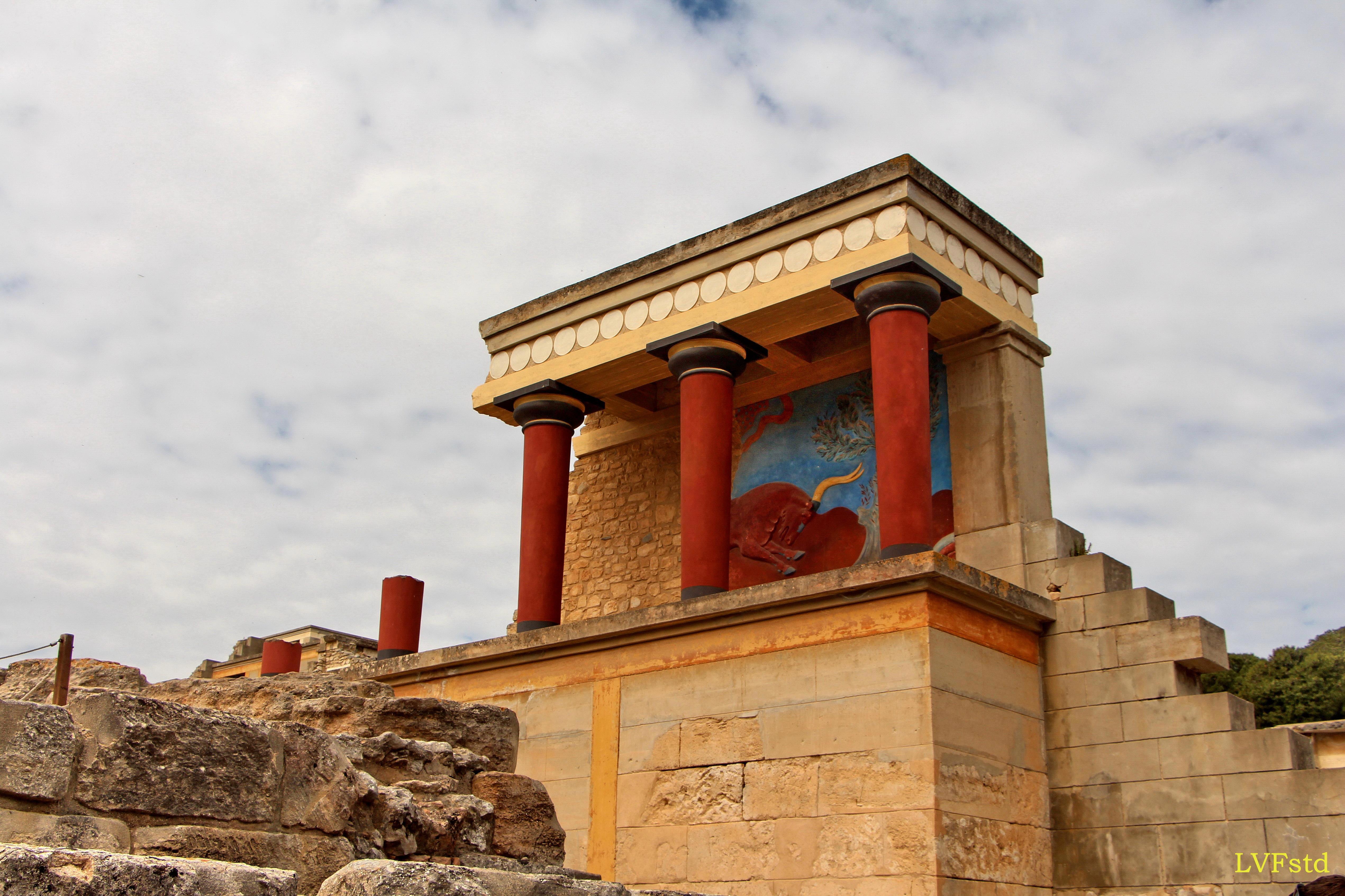 Ахейский воин даже не видел стражей, им будто и не надо было охранять дворец снаружи, ведь разве кто-нибудь, кроме него, осмеливался на это? Луна то показывалась, то скрывалась за облаками. Причудливый дворец возвышался перед ним так странно: террасы с колоннами, портики, балконы неровно то поднимались, то опускались; плоские крыши громоздились одна над другой, освещаясь лунным светом или вдруг темнея. И не в силах побороть влекущее волнение, воин вступил на лестницу. Он поднимался И вот он встал перед дворцом. Он еще колебался. Ему страстно хотелось пробраться вглубь этих покоев, запретных для иноземцев. Он не сомневался в силе своих рук, не боялся же он быка, но тайна... по тихим ступеням дороги процессий и вдруг подумал, что тем путем, которым пускали в тронный зал всех, и иноземцев тоже, не найдет то, что ищет. Сбоку он увидел широкую террасу с колоннами и прыгнул на нее. Каждая колонна расширялась кверху, и только с его ловкостью можно было залезть на крышу террасы. Рядом был балкон и еще
