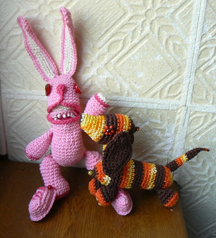 Автор: Marika StanovoiНет, всё -таки не удержалась и зашнуровала кролику ботиночки. И таксю для Татьяны доделала.